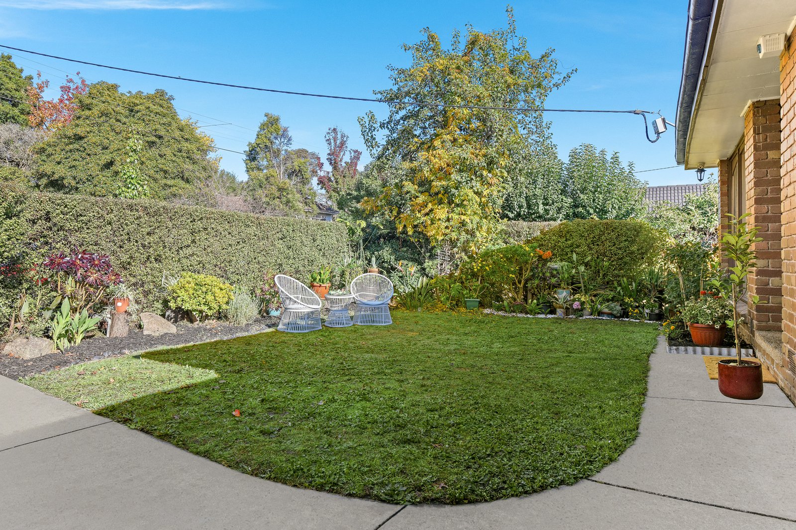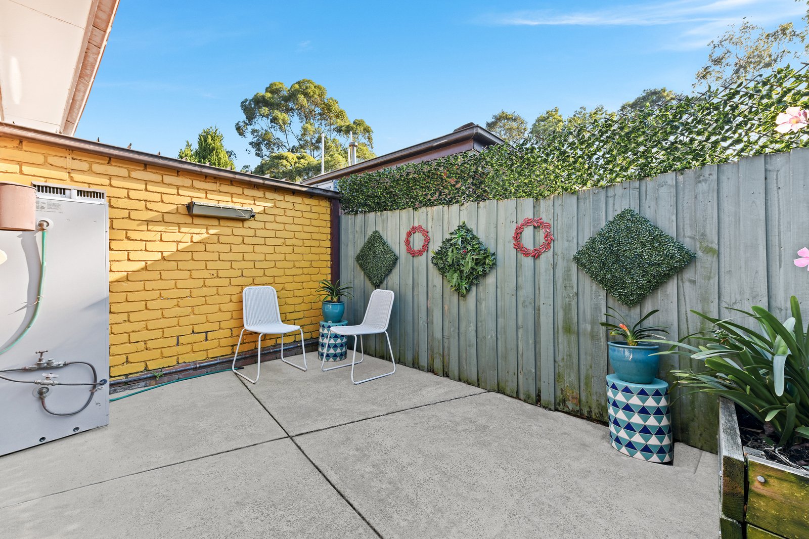 Accessed via the laundry, the covered alfresco and easy-care courtyard extend the opportunity for relaxation and entertaining with minimal upkeep, providing space for colourful potted plants and an outdoor dining set.