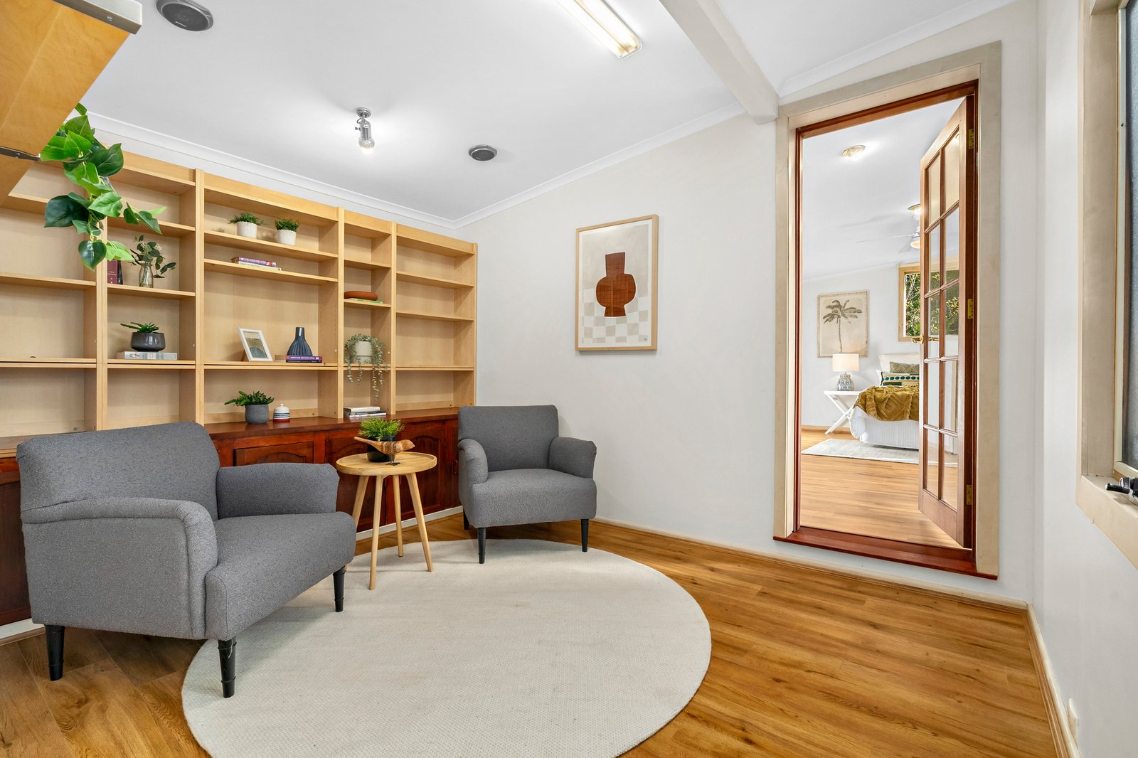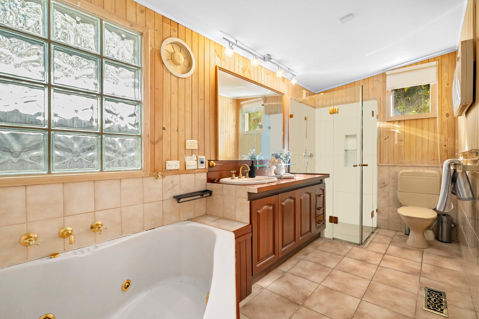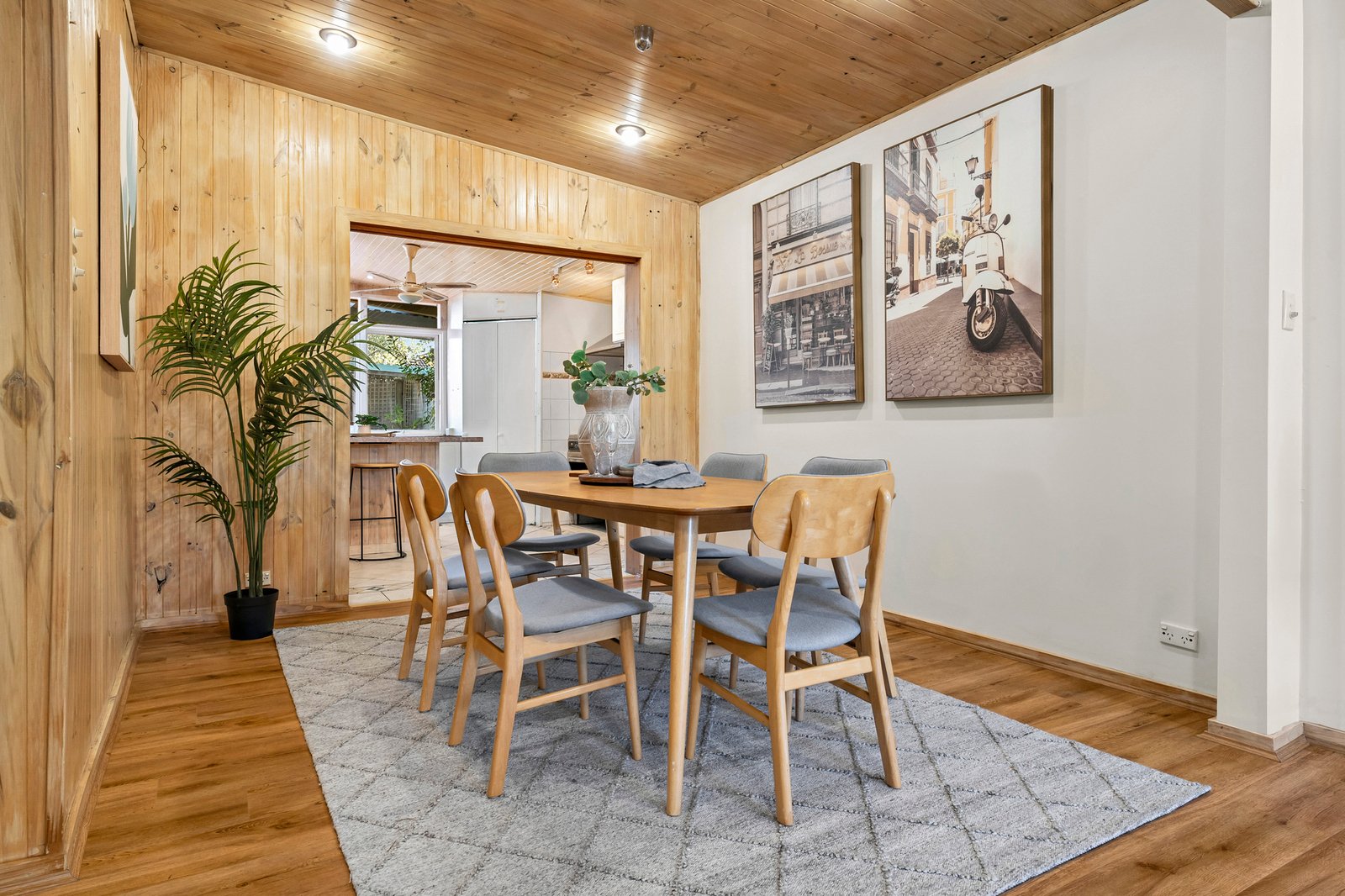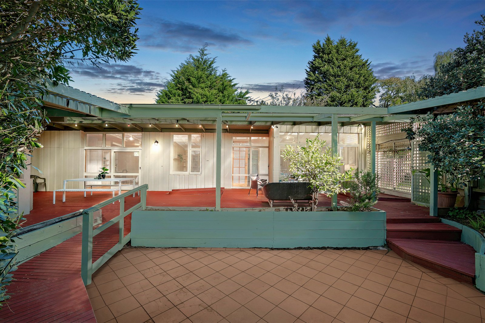 Privately secured behind high fencing and garden screening, the home charms with its unique L-shaped layout – detailed by hybrid floating floors and decorative timber walls for a sense of warm, rustic charm.
