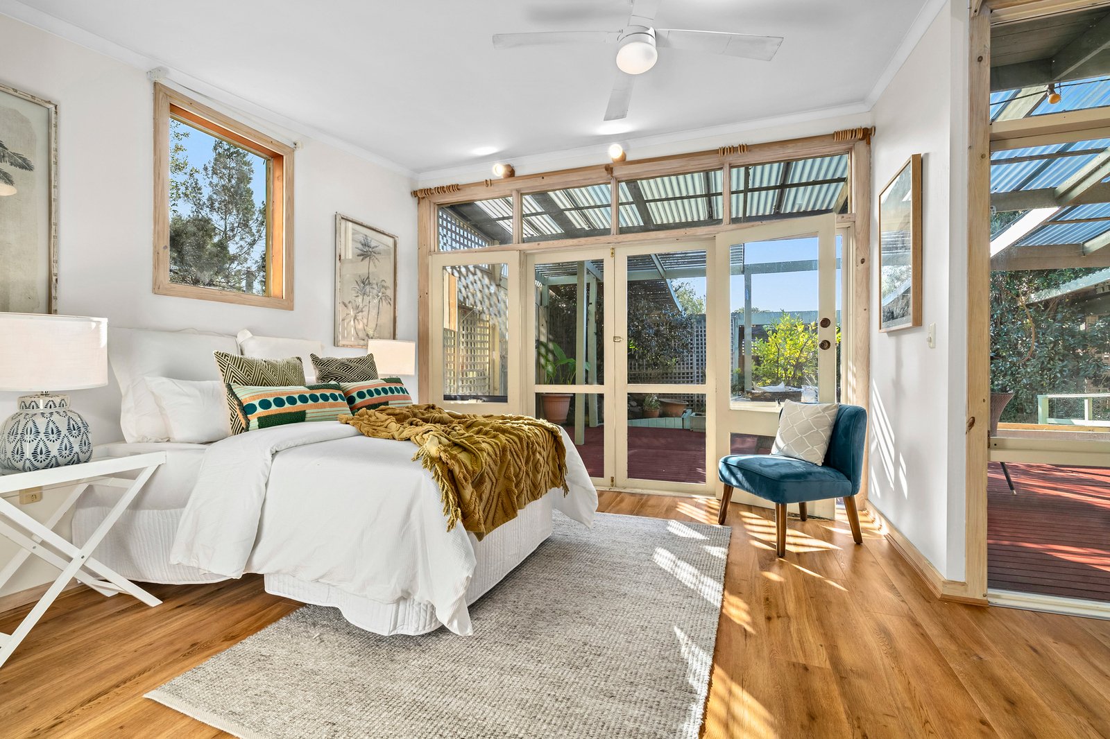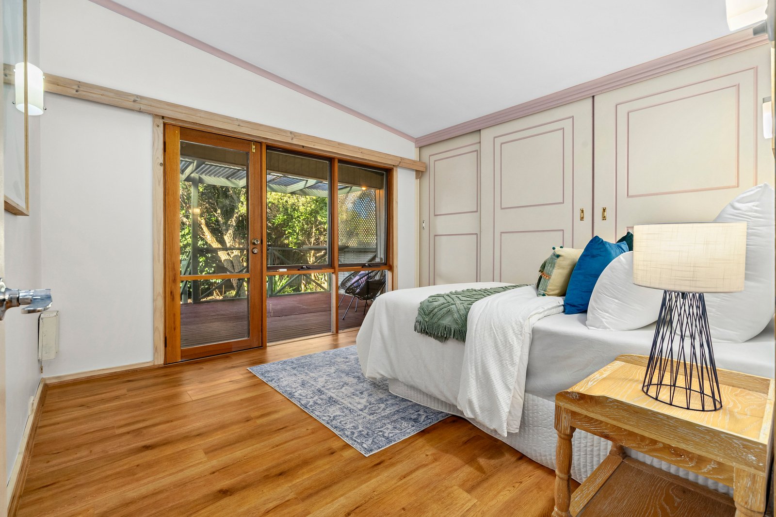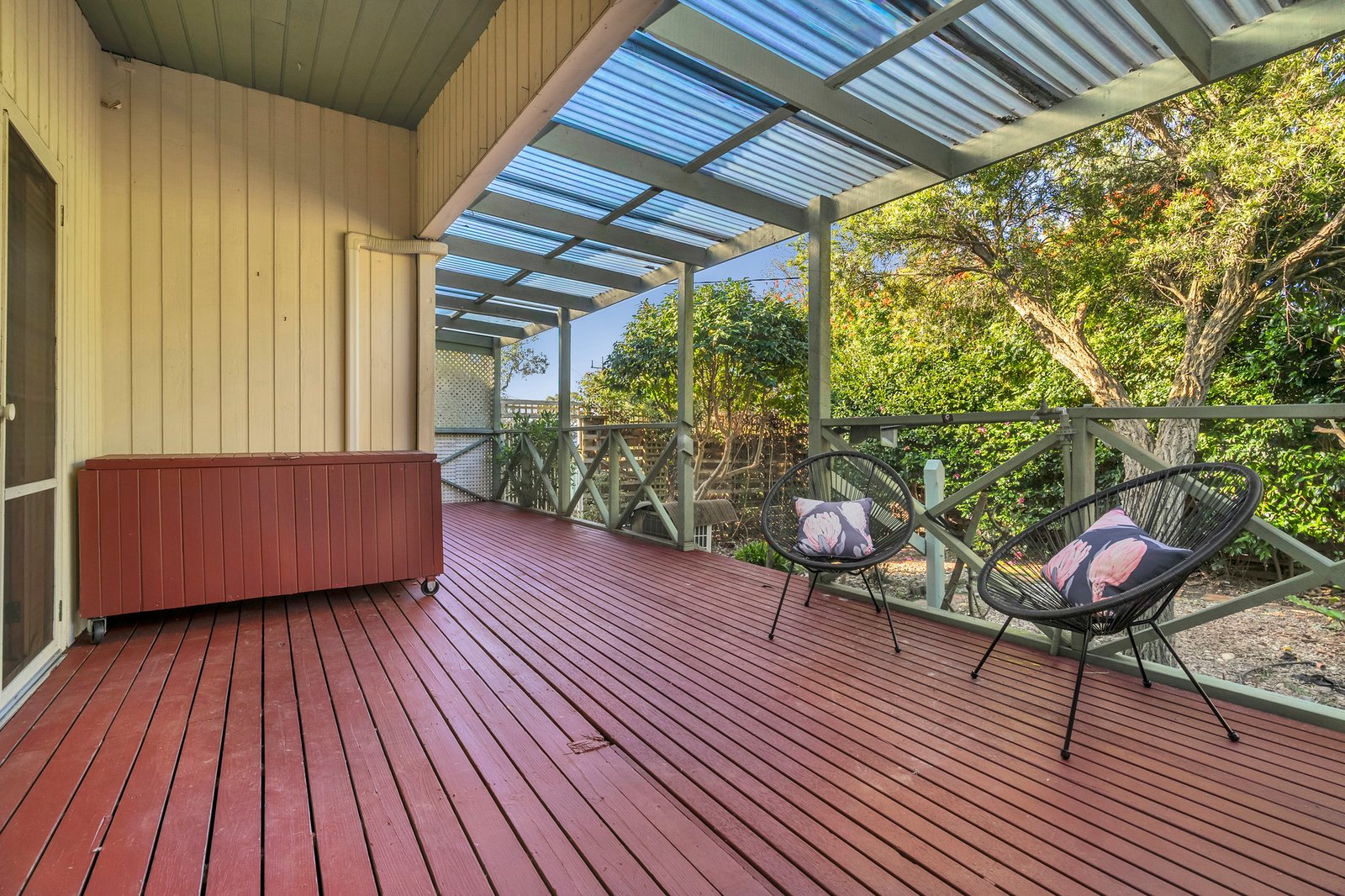 A centrepiece living space opens through French doors to a verandah, perfectly hidden from street view. The front bedroom also offers access to the deck for vacation style freedom.