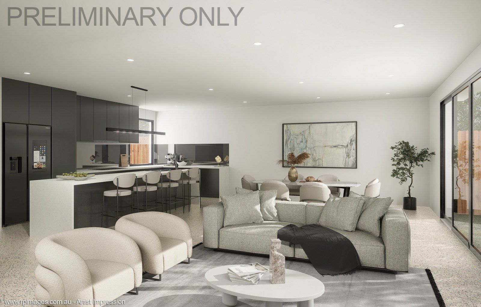 The approved plans showcase a thoughtfully designed three-bedroom home, perfect for modern living. The ground floor features a spacious master bedroom complete with a walk-in robe and private ensuite, ensuring a comfortable retreat. The heart of the home is the open-plan kitchen, dining, and living area, seamlessly connecting to create a welcoming space for everyday living and entertaining. A convenient powder room and a double garage with direct internal access add to the practicality of the design.