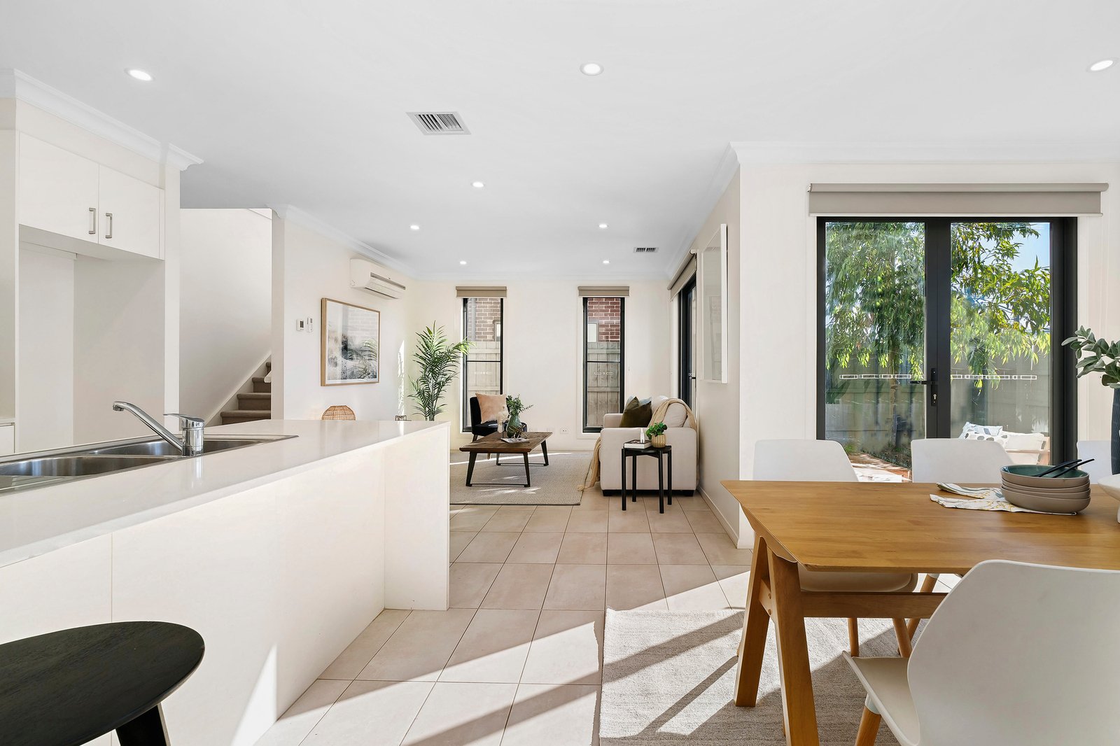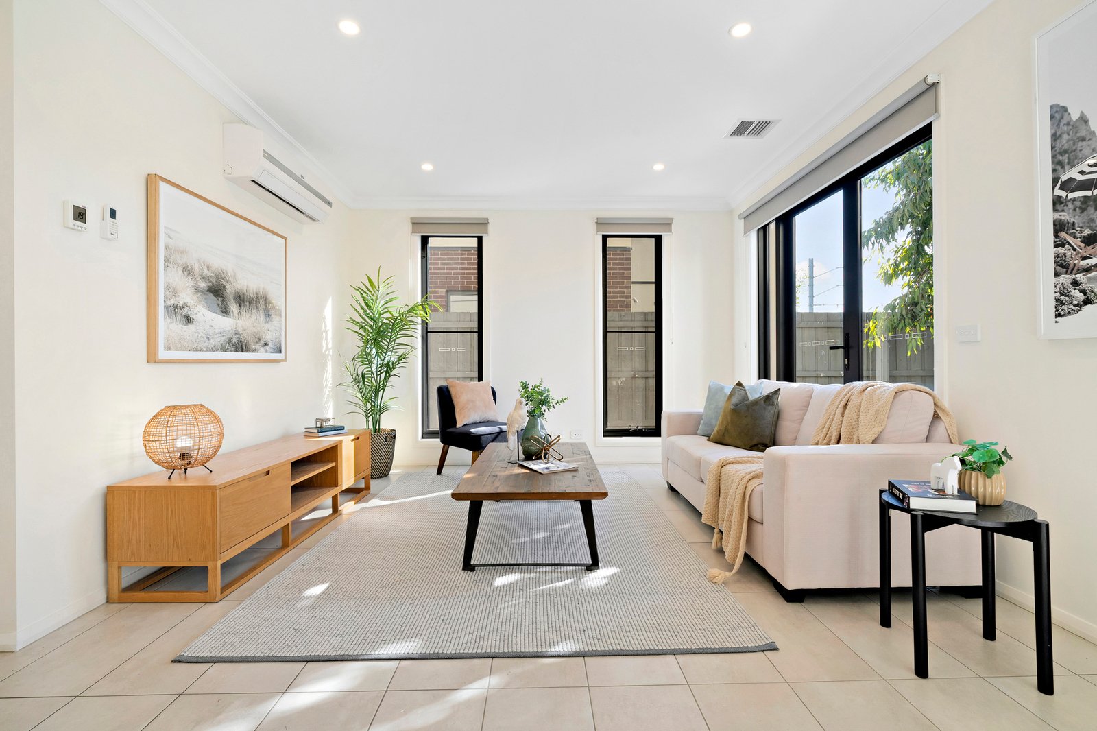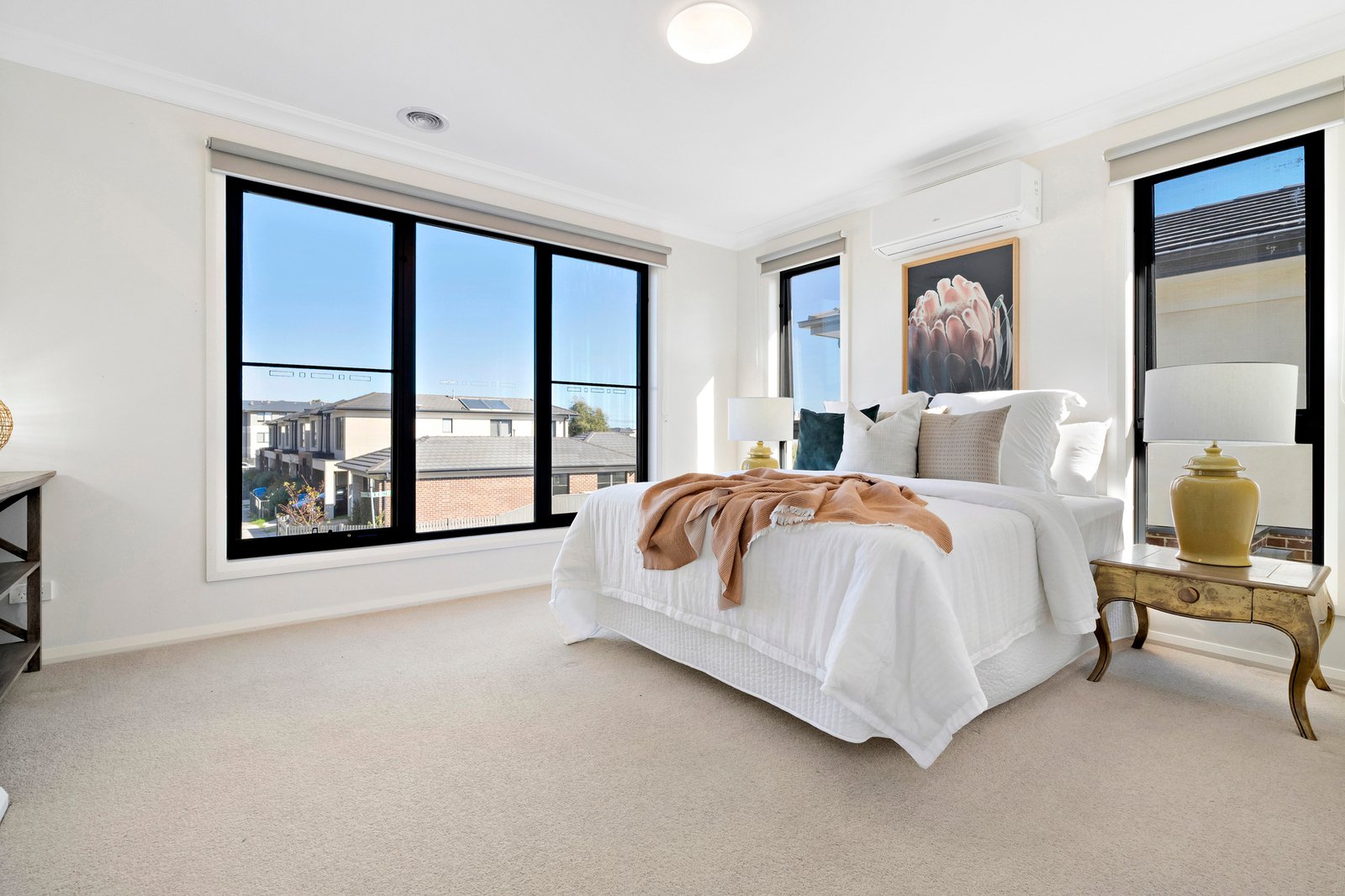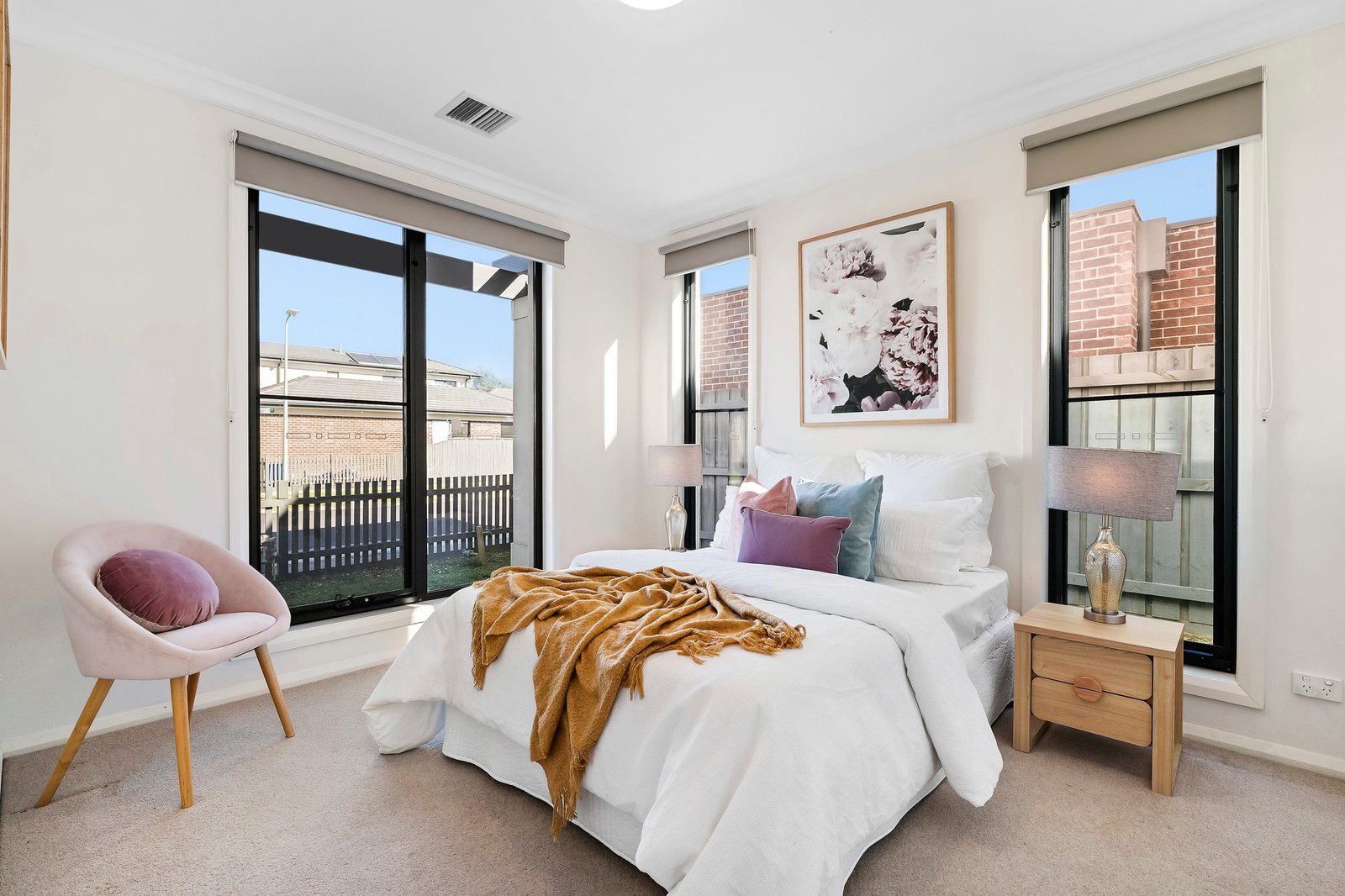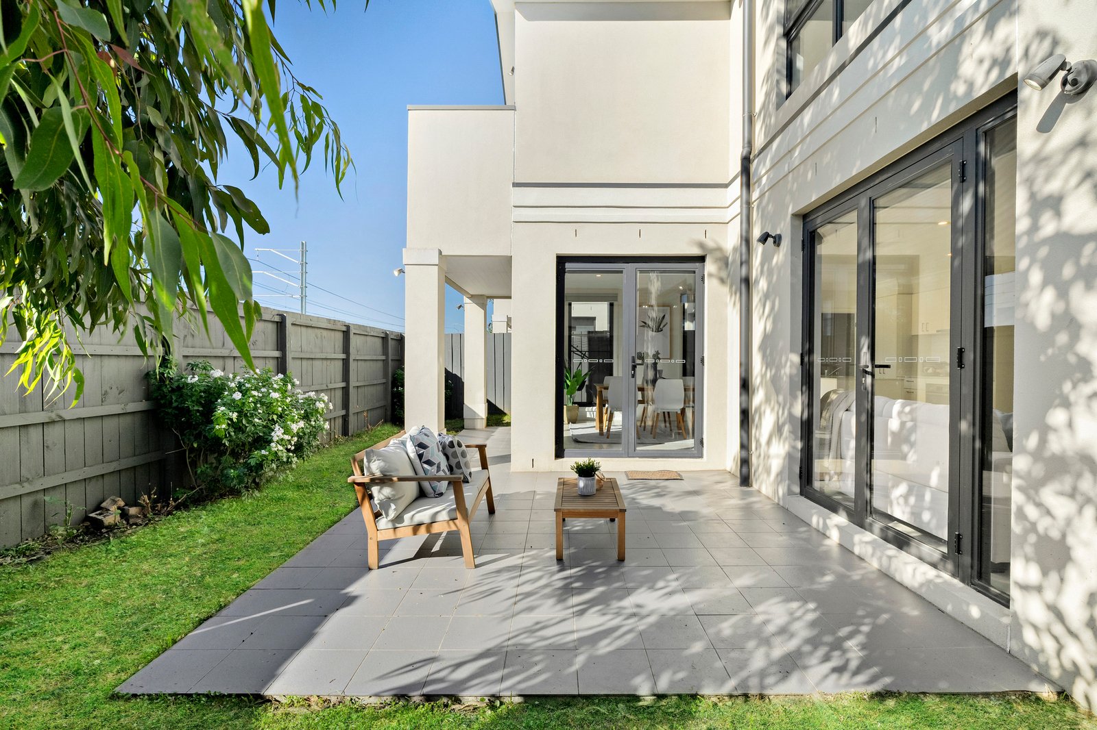 Fully featured with split system heating/cooling units, roller blinds, a paved al fresco area, and 3 sets of French doors delivering seamless indoor-outdoor connection.