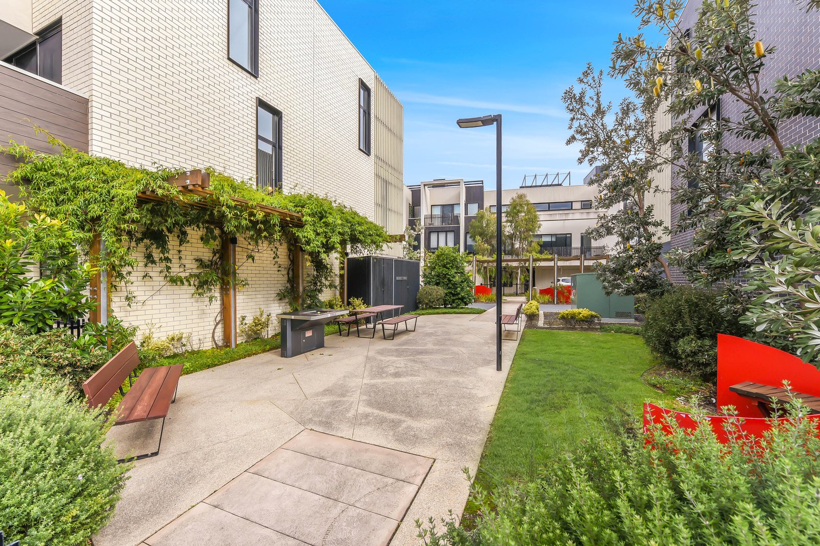 The townhouse boasts modern construction materials, including light sandy brick veneer and painted concrete render in contrasting tones of Moroccan sand and charcoal grey. Ornamental painted timber highlights and neat hedges frame the block, adding to its aesthetic appeal. Communal gardens and a BBQ picnic space provide a relaxing environment. As the last townhouse in the row, it enjoys no neighbours to the South and adjoins a quiet reserve.