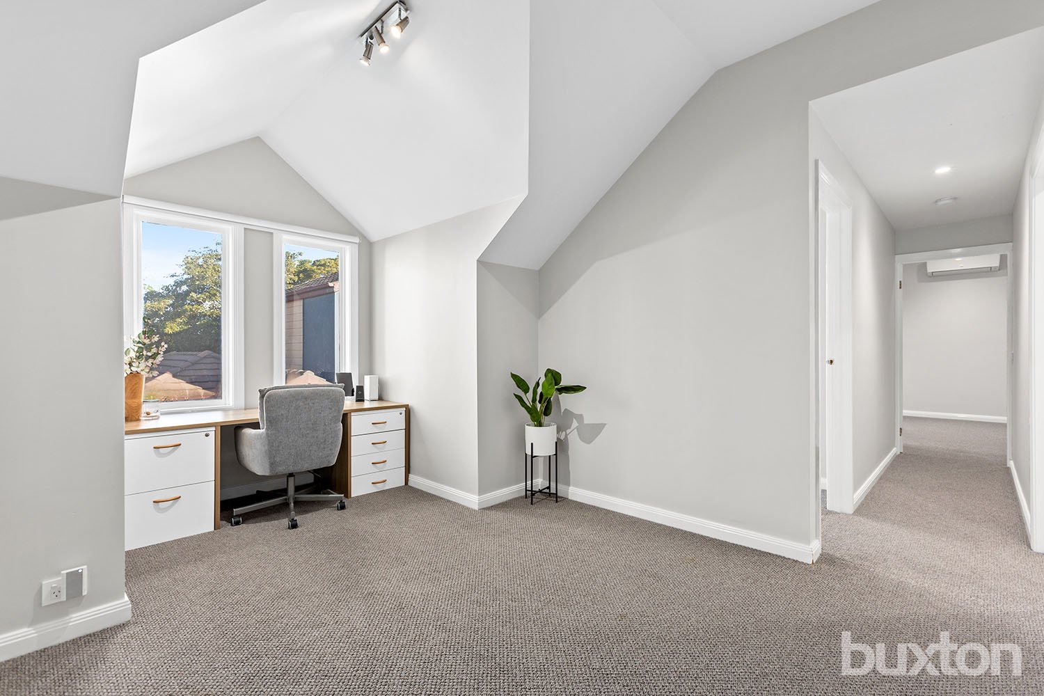 Upstairs to a fully equipped study space with printer, built-in filing cabinet and high-speed internet included and paid for. 2nd bedroom with built-in-robes, heater and TV and Fetch Box provided. A stunning, huge master bedroom with pitched ceilings, walk-in-robe, split system heating and cooling and a well-appointed main bathroom with bath to service upstairs.