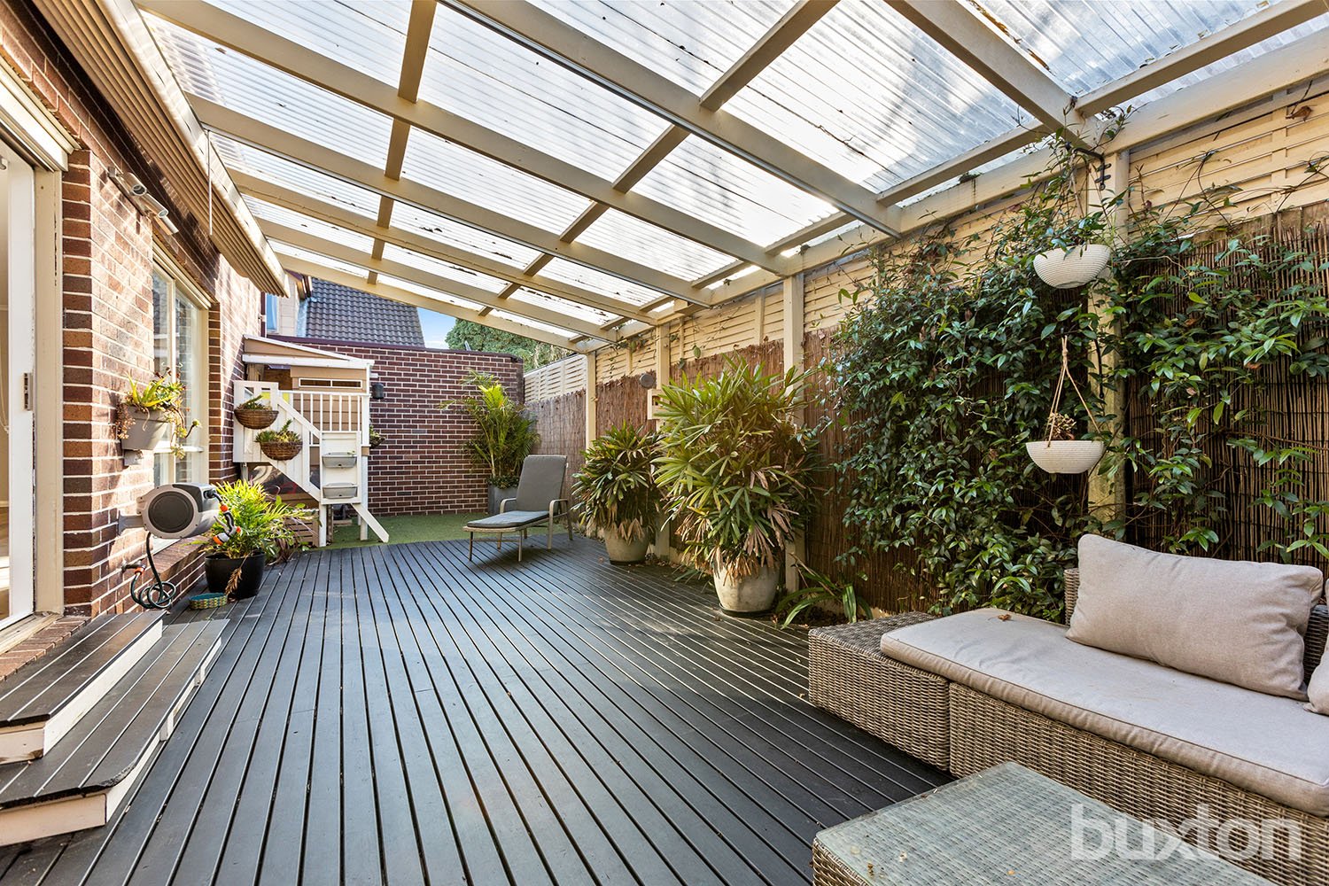 A low-maintenance, all-weather courtyard garden with covered and decked entertaining, outdoor lounges, coal BBQ and TV provided as well as a hand-made cubby, perfect the little ones.
