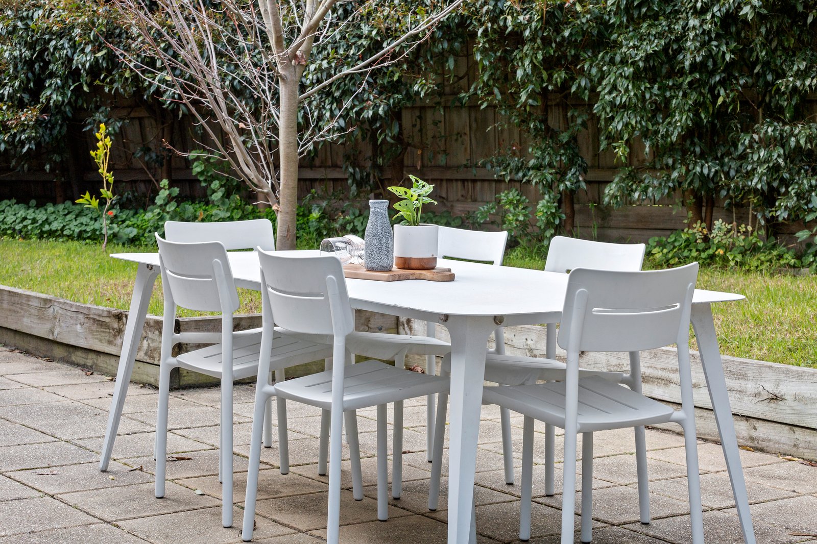 Sliding glass doors off the dining zone reveal a tranquil outdoor entertaining area. Whether sipping a morning latte or savouring a glass of wine with friends on balmy afternoons, the setting evokes instant serenity.
