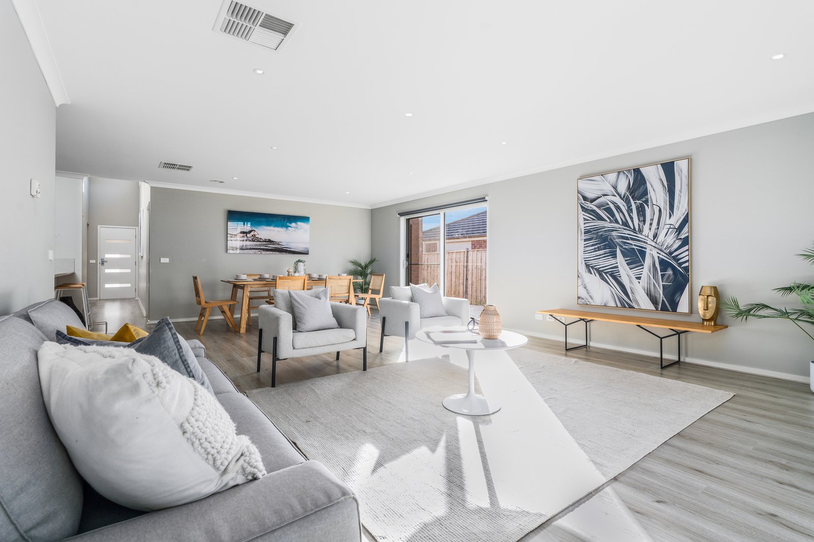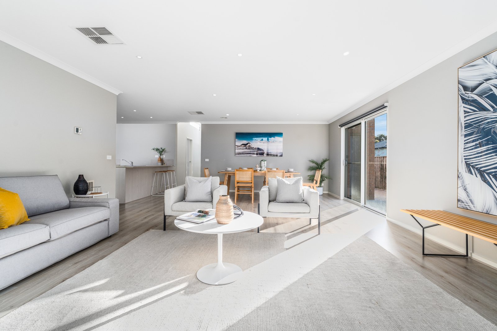 Open plan kitchen meals opening onto two alfresco areas one covered and one not. The best of both worlds for seasonal living.