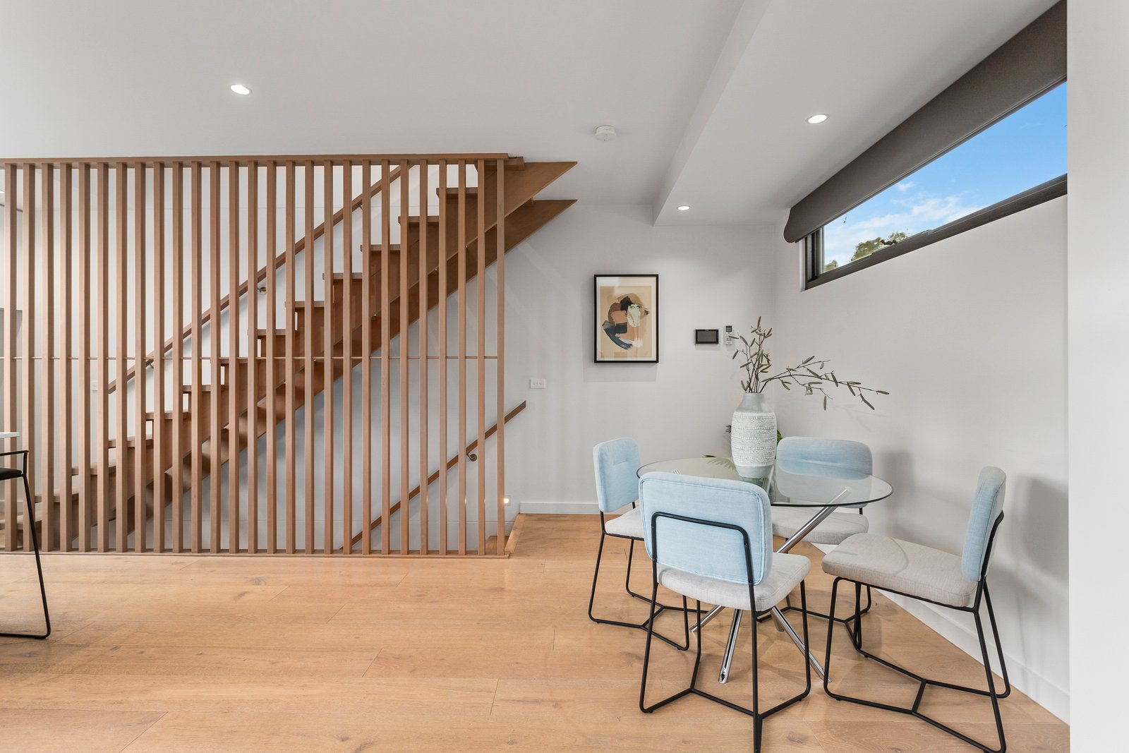 The top floor is the ultimate retreat, featuring a master suite complete with a walk-in robe, ensuite, and an additional study nook. The thoughtful design ensures optimal natural light, with morning sun brightening the space while afternoon heat is minimised.