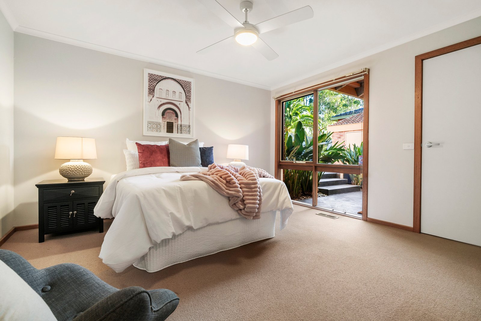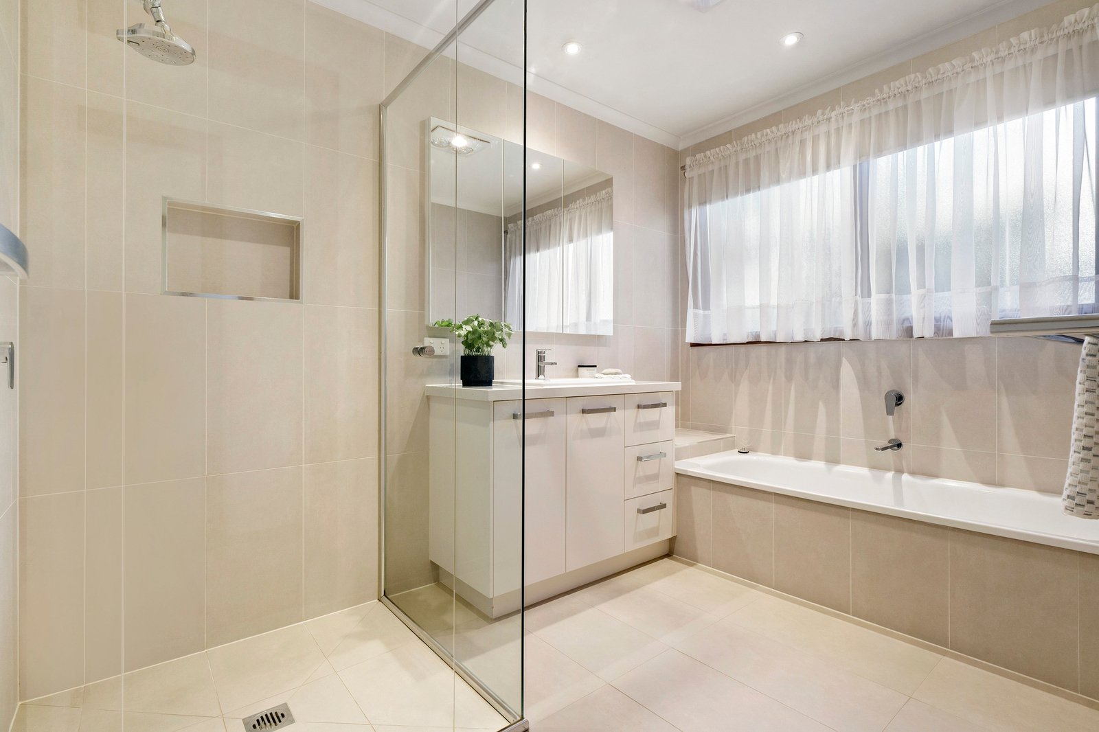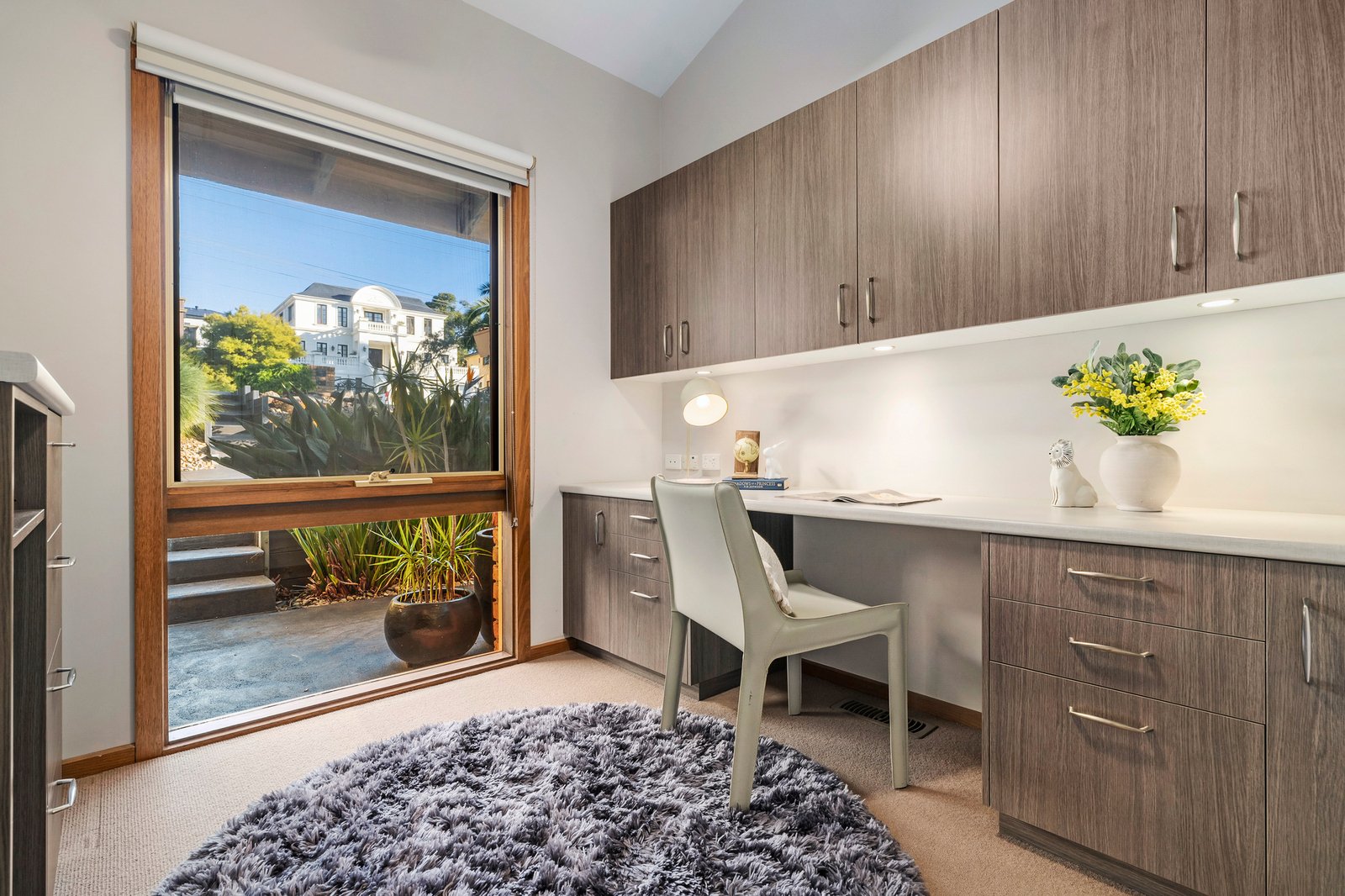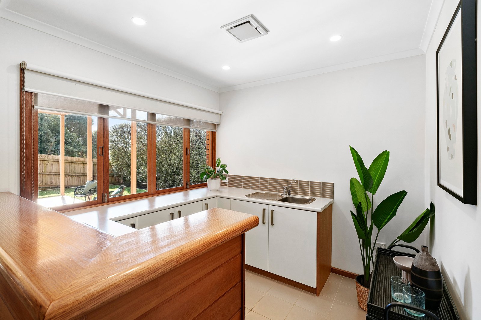 With its classically renovated bathrooms, clever ceiling fan light combos, day and night roller blinds, central heating, evaporative cooling and split system units powered by 12 solar panels (3kw), this exclusive residence welcomes you to one of the most picturesque parts of Wheelers Hill – protected by the service road, with 2 garages for 4 cars plus workshop, and easy access to shopping at The Glen and Wheelers Hill, Jells Park picnic grounds and the city to coast gateway of Eastlink.