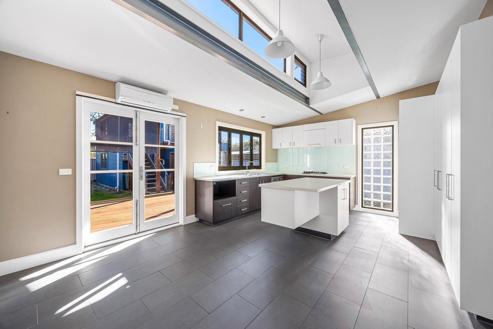 - Updated kitchen with gas cooktop, electric oven, dishwasher, split system heating/cooling and plenty of pantry space
