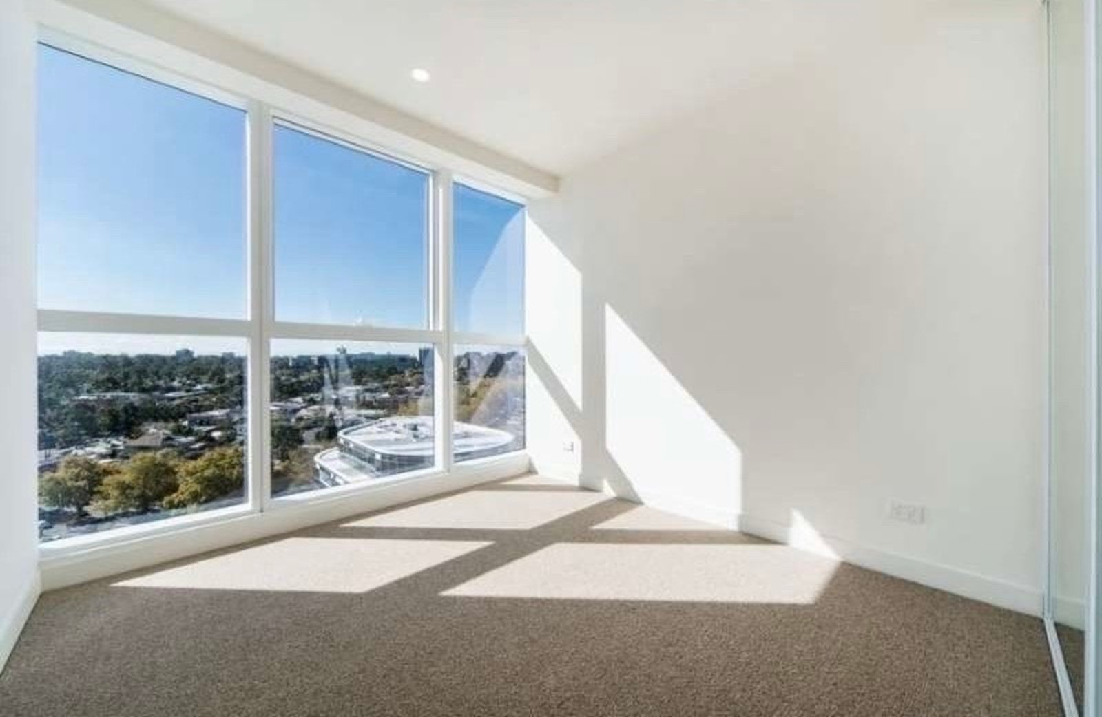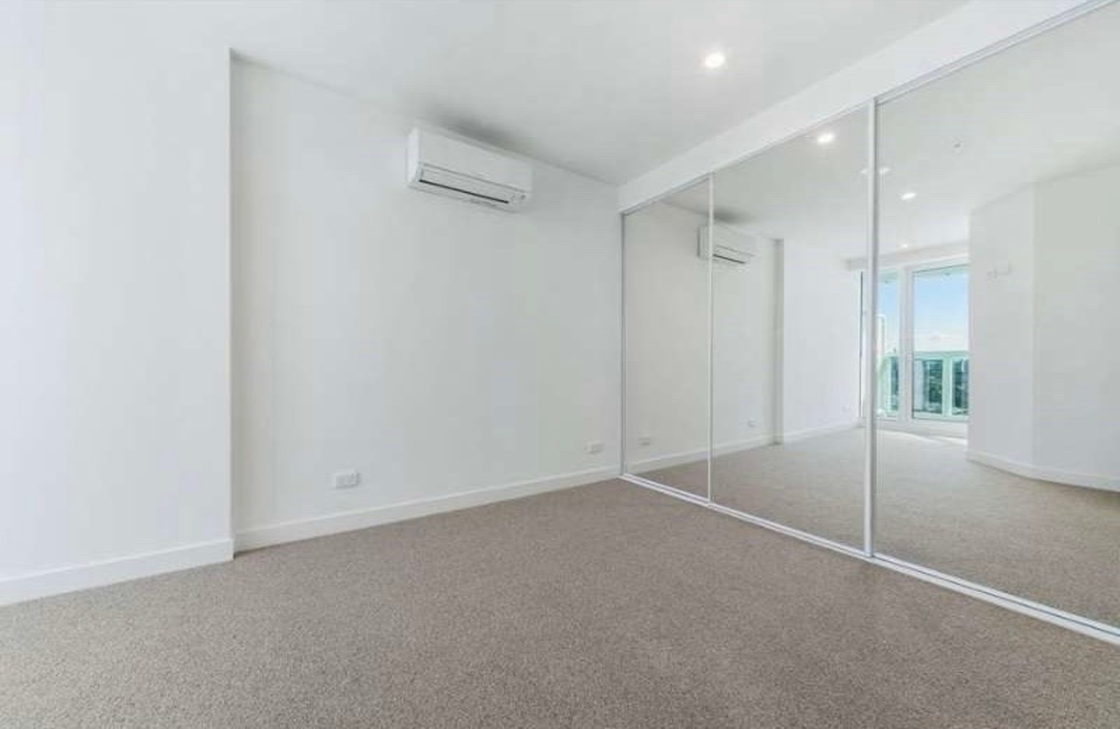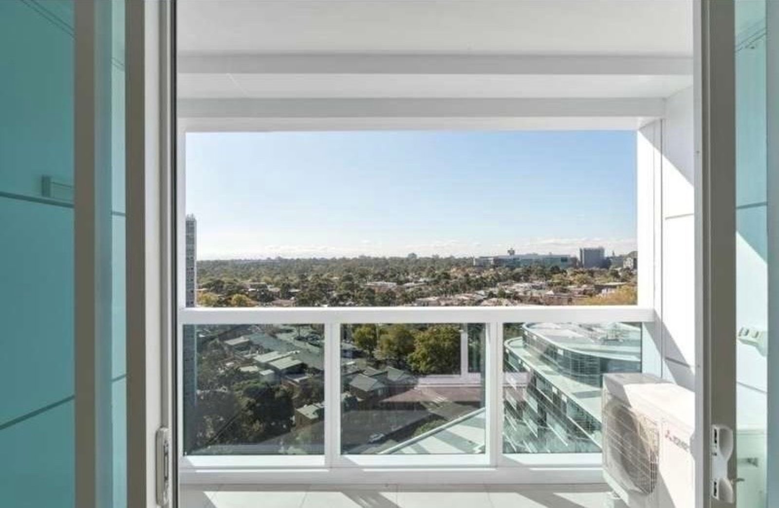 The floor-to-ceiling double-glazed windows also feature zebra blinds for comfort and privacy. The bathrooms offer large vanities and larger-than-average showers, and both bedrooms have generously sized built-in robes.