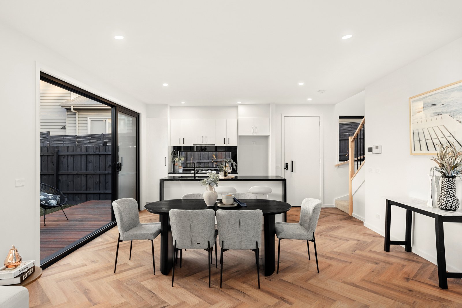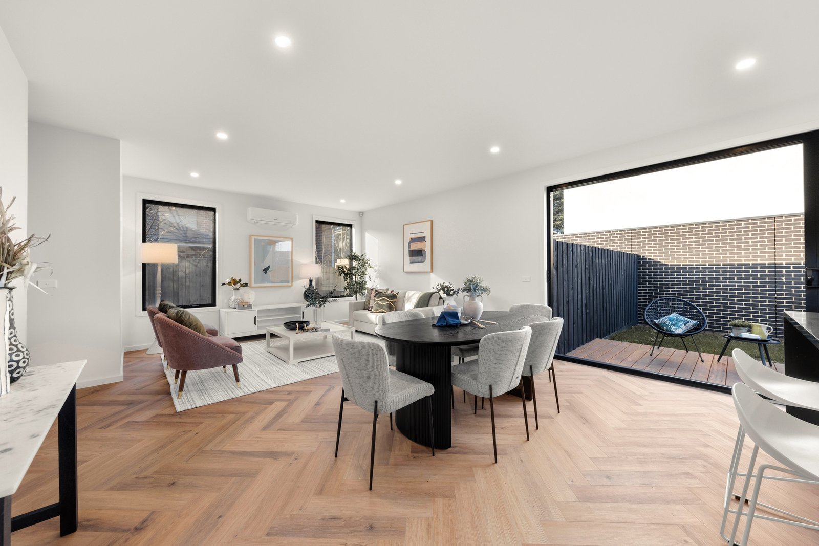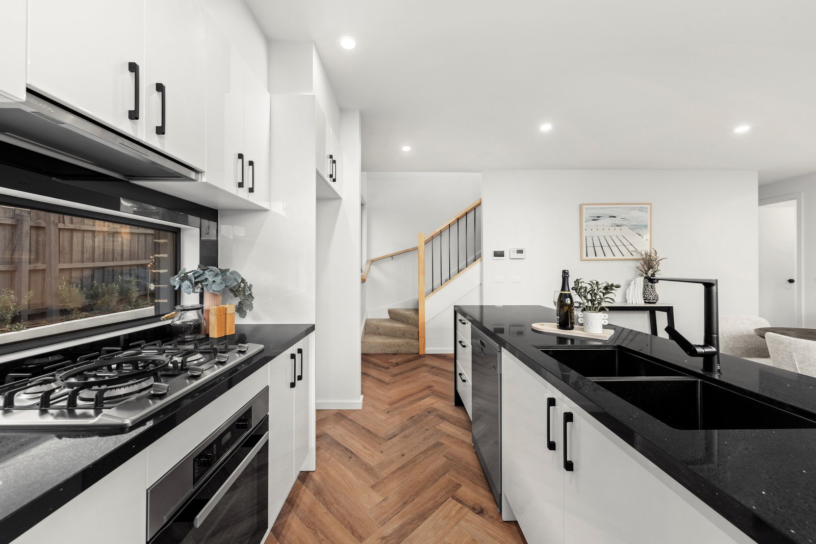 Dressed to impress, this sophisticated new home provides a unique opportunity to enjoy a premium low-maintenance lifestyle with unmatched convenience. In a boutique group, the interior features a spacious open-plan living and dining room enhanced by quality herringbone oak floors and natural light, adjacent to a stunning kitchen appointed with a stone island breakfast bar, and high-end Miele appliances for the discerning home chef.