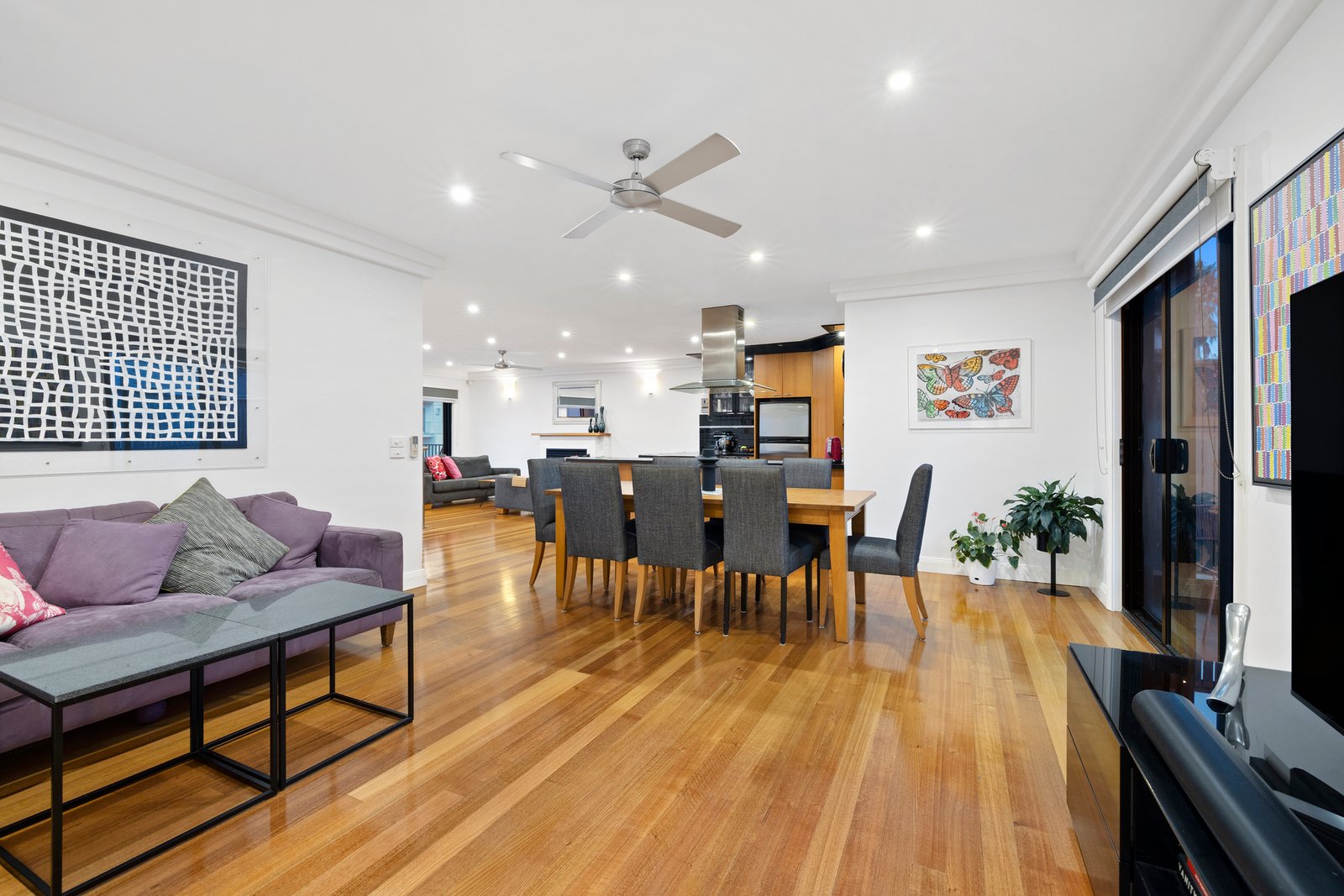 A reverse floorplan allows the upstairs entertaining zone - complete with gas fireplace - extra natural light and a fabulous, elevated aspect. Offering a triple-zoned layout with both living and dining spaces as well as a family TV area, there is also a large granite kitchen with ample storage, stainless steel appliances and a relaxed breakfast bar. Balconies front and back ensure there is the perfect space to relax whatever time of day - throwing back the doors at both ends lets the fresh salty air flow through.