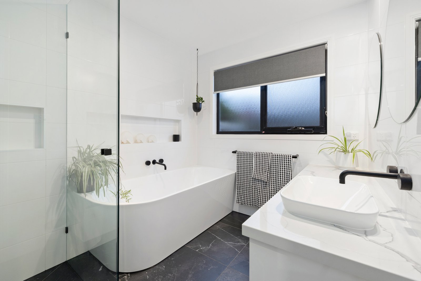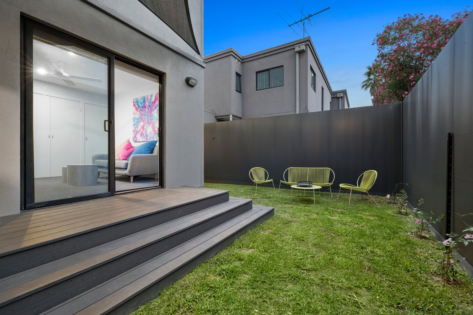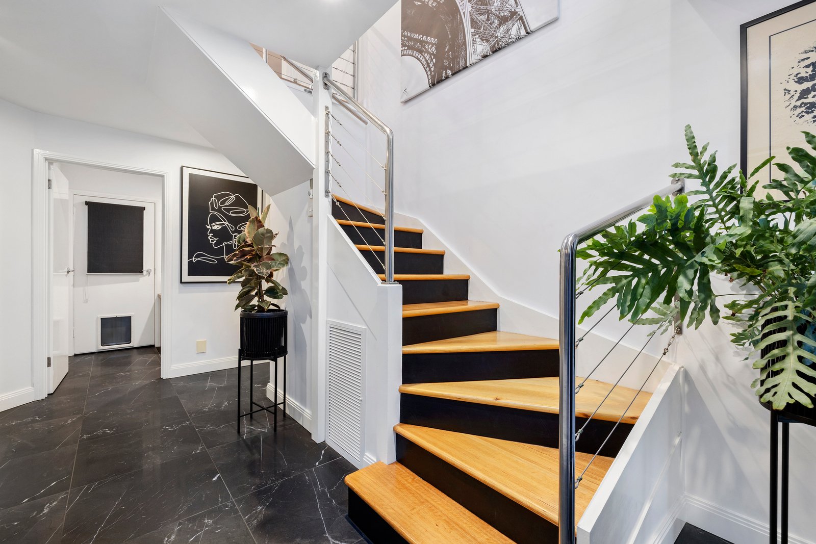 Up on this level is the king-sized master with a cool ebony-toned walk-through robe to the smartly renovated bathroom with twin vanity and a luxe shower, while downstairs are three further bedrooms all with built-in robes – one an optional 4th bedroom/family room with access to the garden.