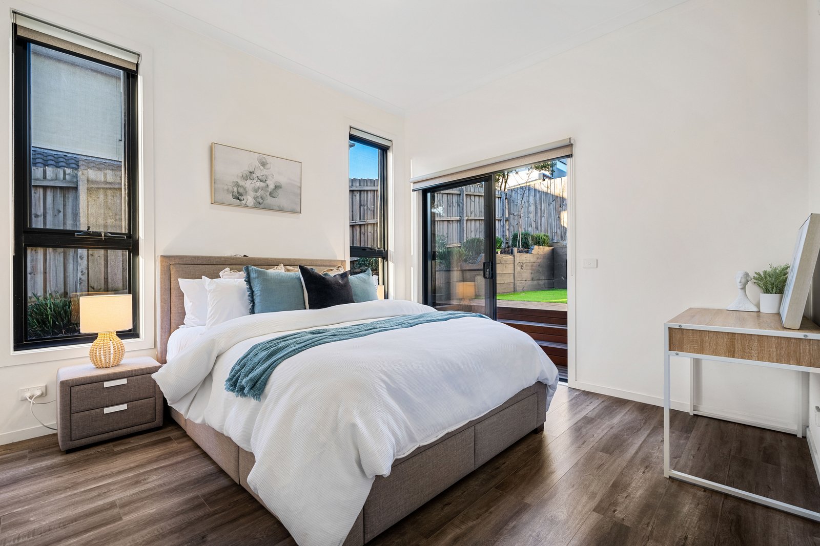 Upon entry, one is greeted by a radiant atmosphere that complements the open-plan dining and family area. The kitchen is a culinary delight, featuring a central stone island, a walk-in pantry, and top-tier Blanco appliances. Entertain guests beneath the sunlit alfresco or retreat upstairs to the serene lounge area. Host visitors in the ground-floor bedroom, complete with a fully-tiled ensuite, and luxuriate in the master bedroom upstairs, which offers a walk-in robe and a sumptuous ensuite. The two additional bedrooms are enhanced with built-in wardrobes.