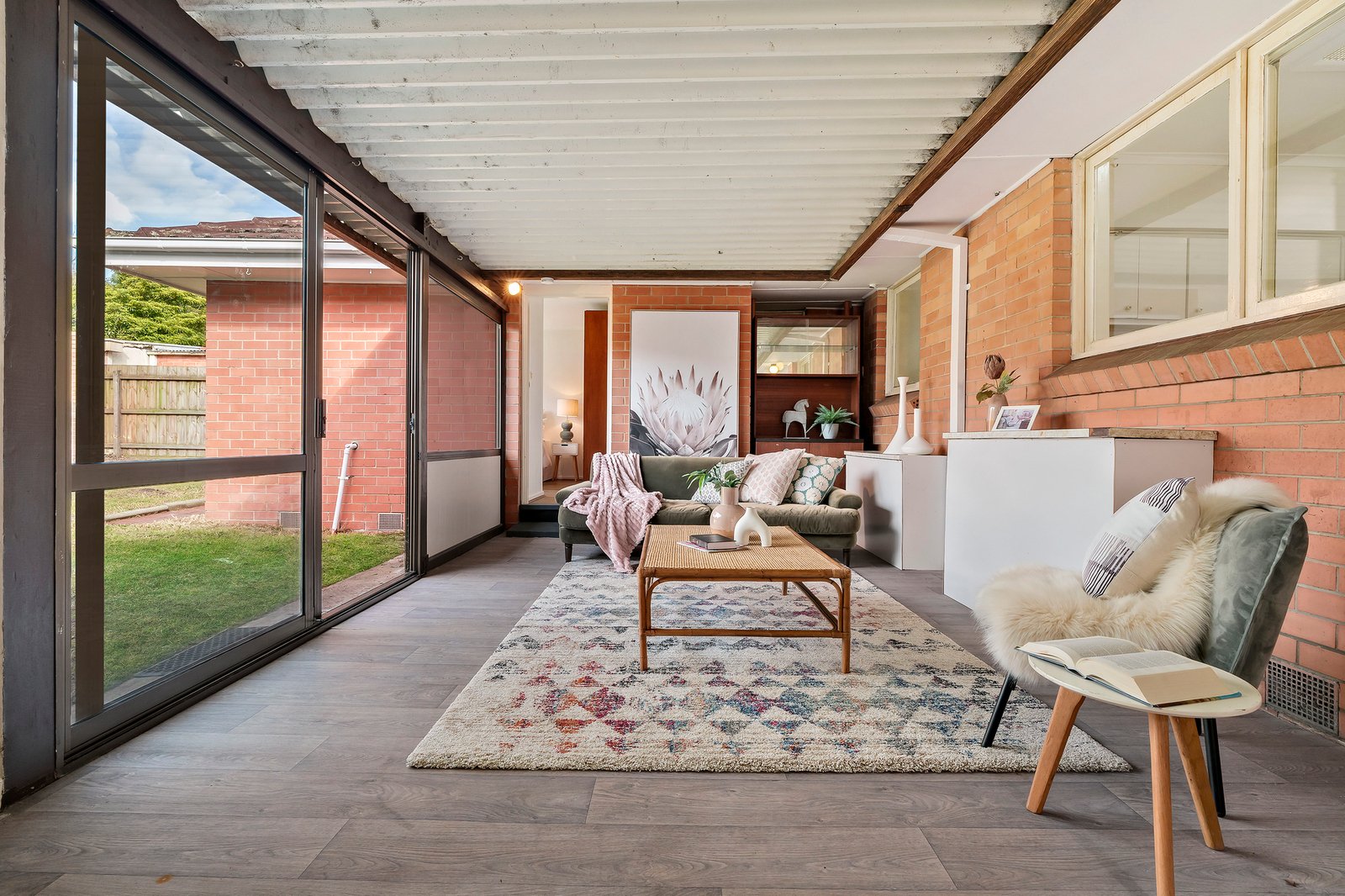 The home enjoys plenty of natural light, enhanced by big corner windows, a new split system heating/cooling unit in the lounge and offering an enclosed sunroom next to a guest bedroom as a private separate living wing.
