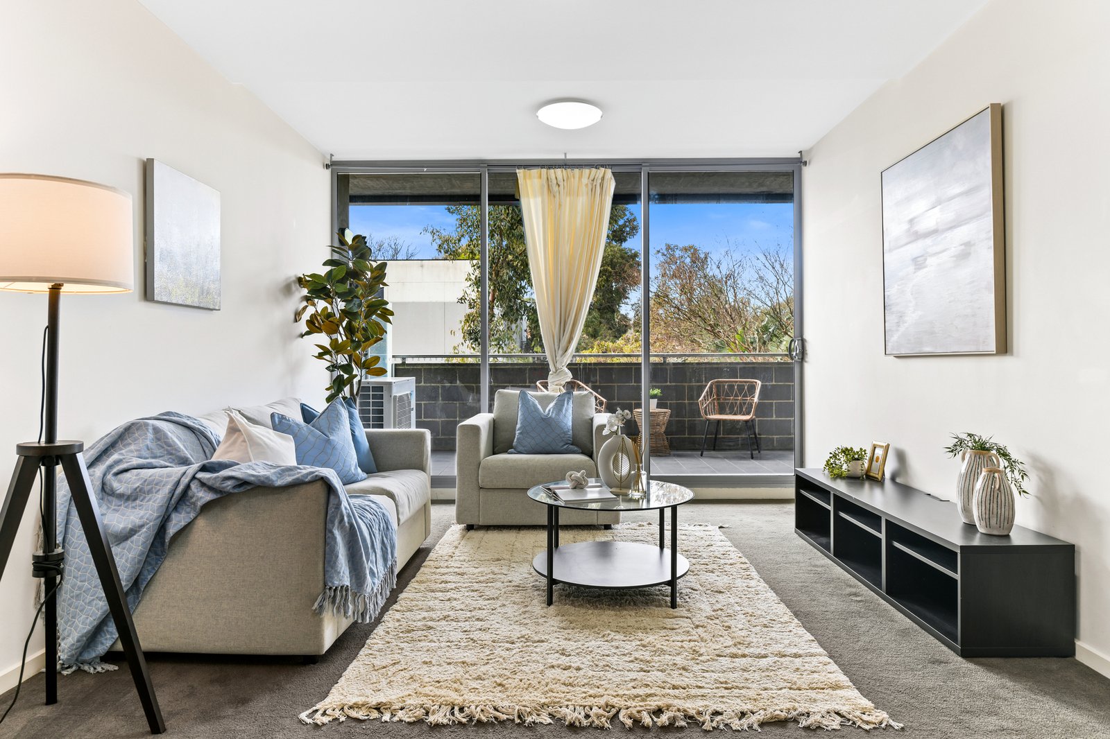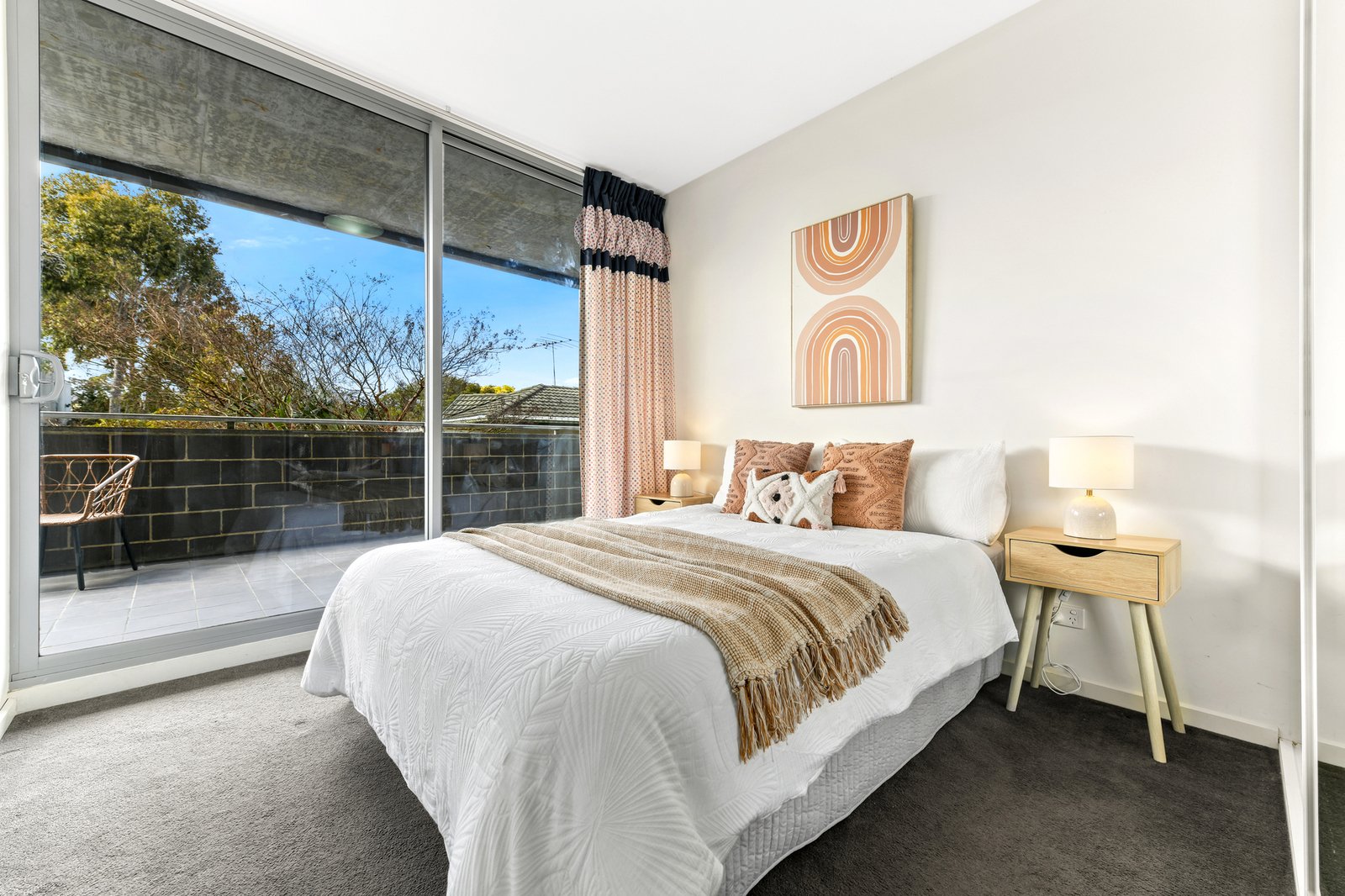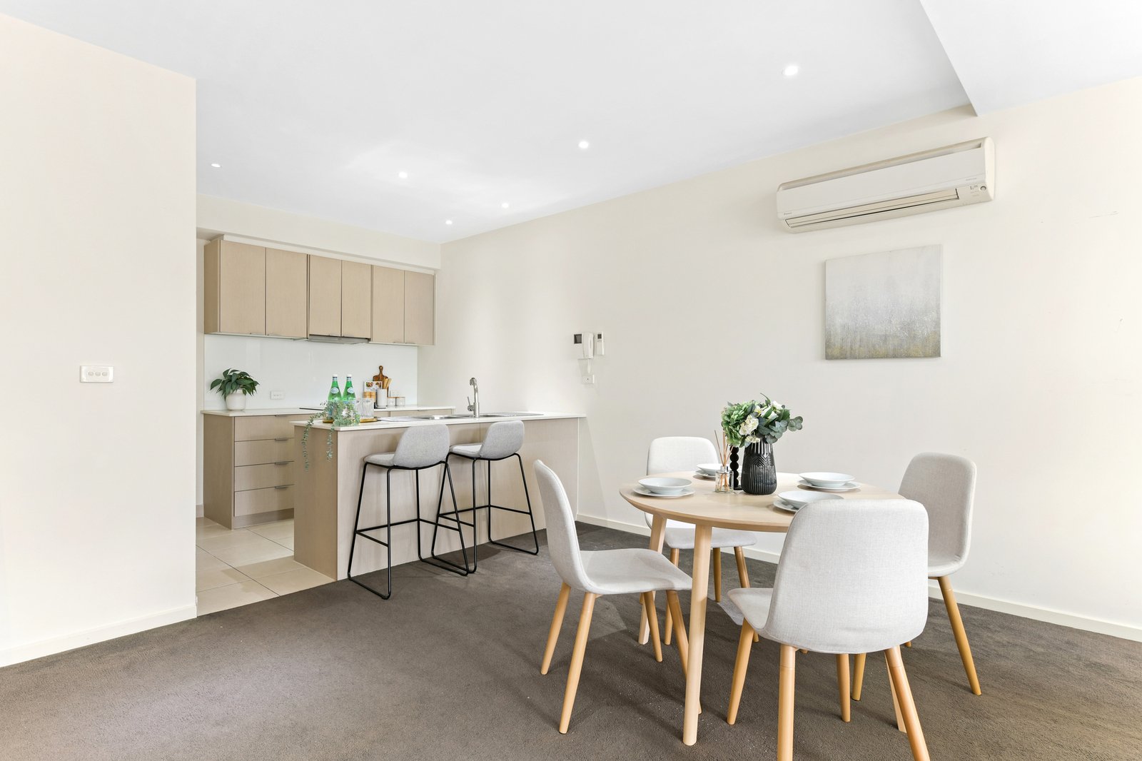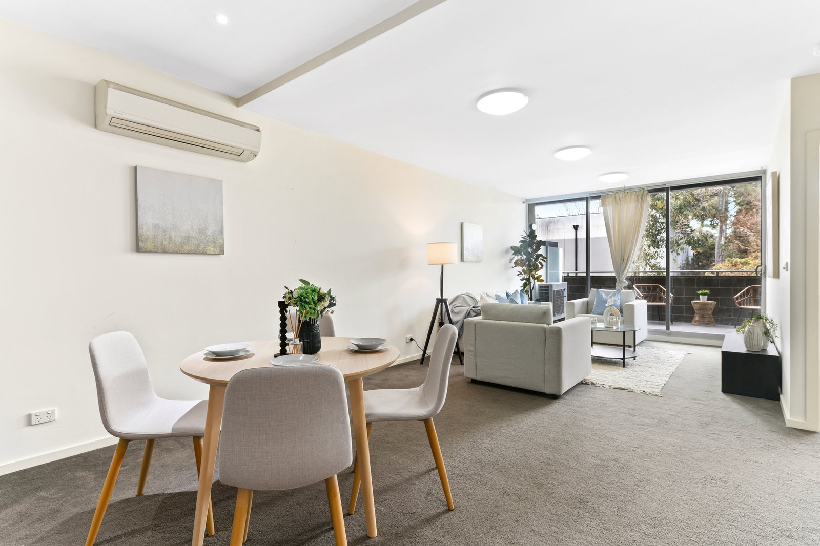 Located in the contemporary Cavelli apartment complex, 4/286-290 Blackburn Road offers modern living in a prime Glen Waverley location. The building’s sleek facade, featuring glass balustrade balconies and modern construction materials, creates an appealing street presence. The property comes with a secure underground parking space and a storage cage for added convenience.