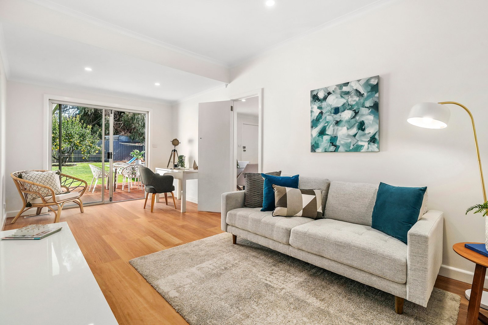 Infused with gorgeous natural light throughout and on a generous 700 sqm allotment, this home now presents as a contemporary classic – beautifully detailed by Blackbutt hybrid floors, soft sheers and on trend black accents, while still retaining the character picture windows and slate surround fireplace of its ‘70s origins.