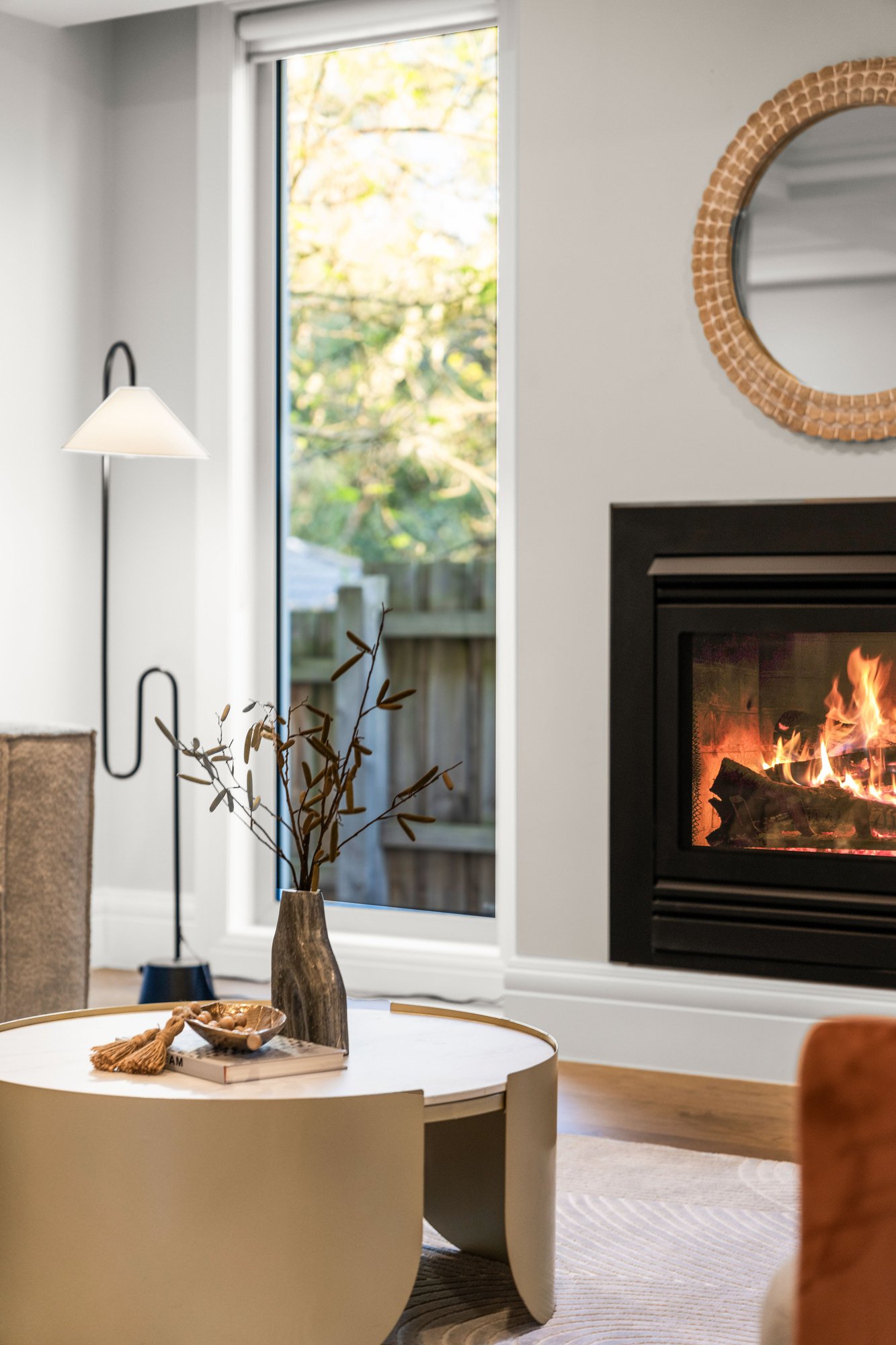 Further enhancing the home's functionality are extensive storage solutions, a conveniently located powder room, and a capacious laundry with ample storage. The residence exudes elegance with wide board timber floors, coffered ceilings, and a gas log fire.