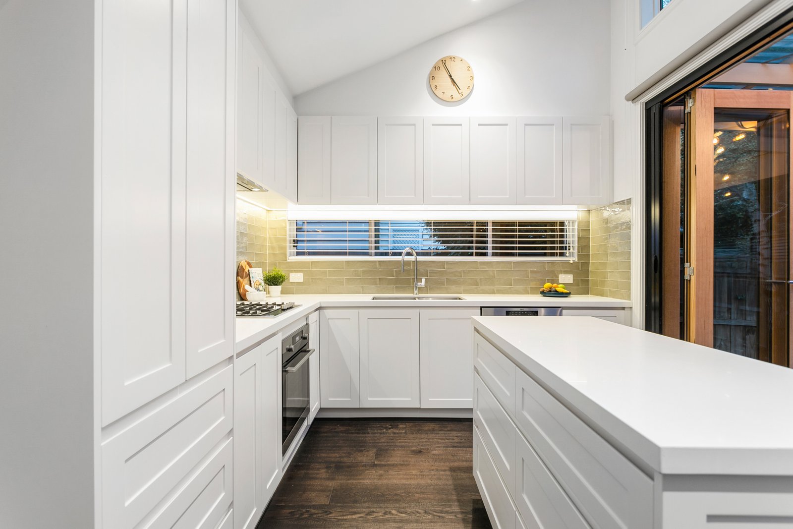- The open-plan kitchen and dining area are the heart of the home, featuring a