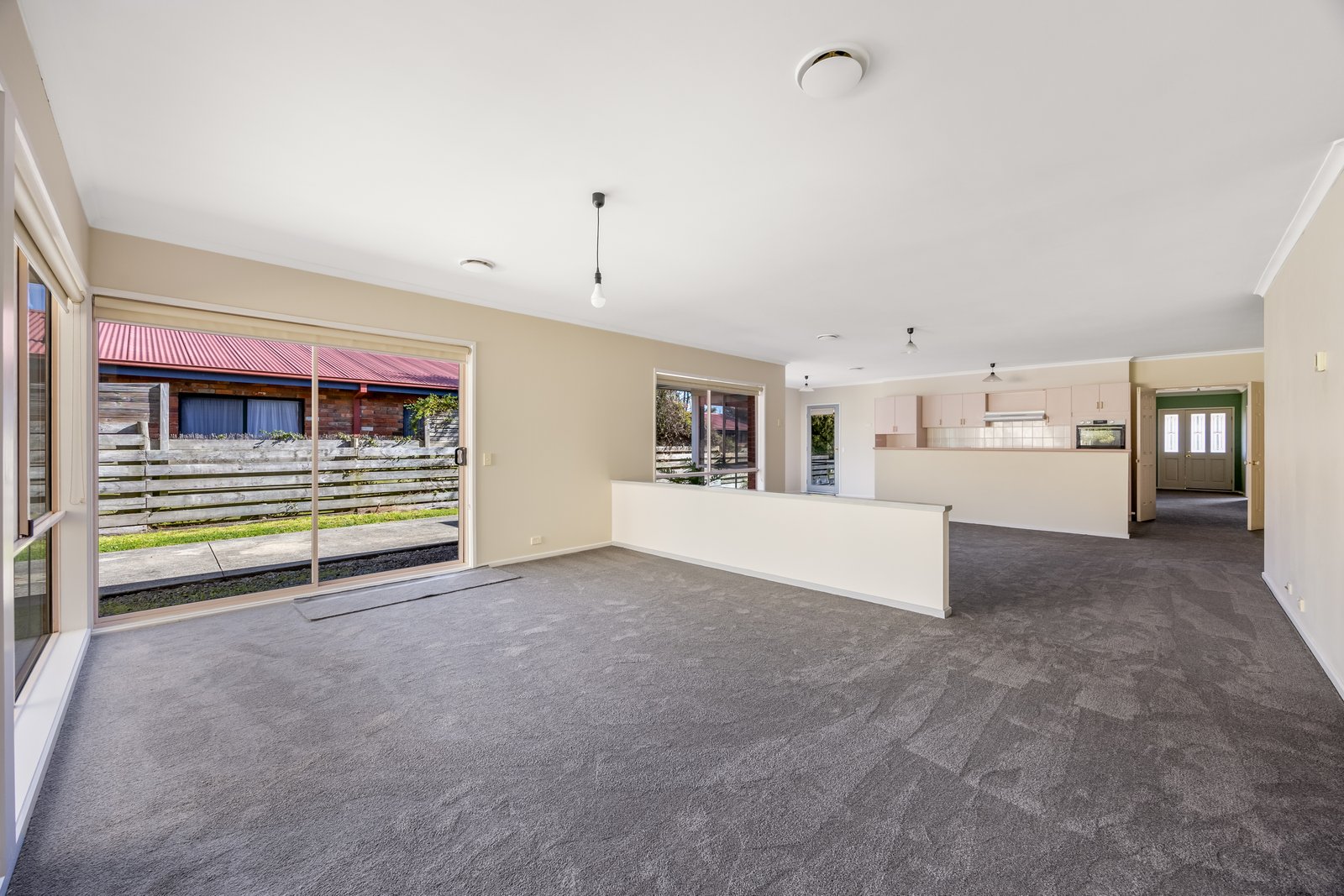 - Large open plan kitchen, meals and living space.