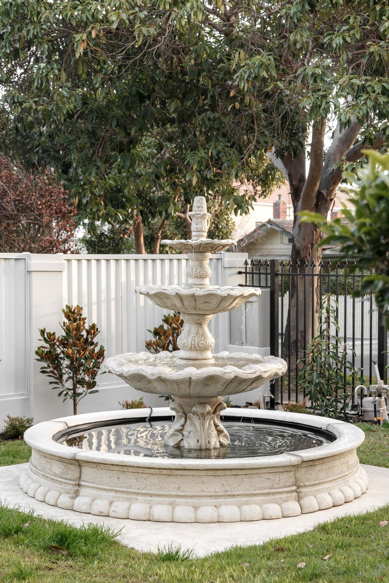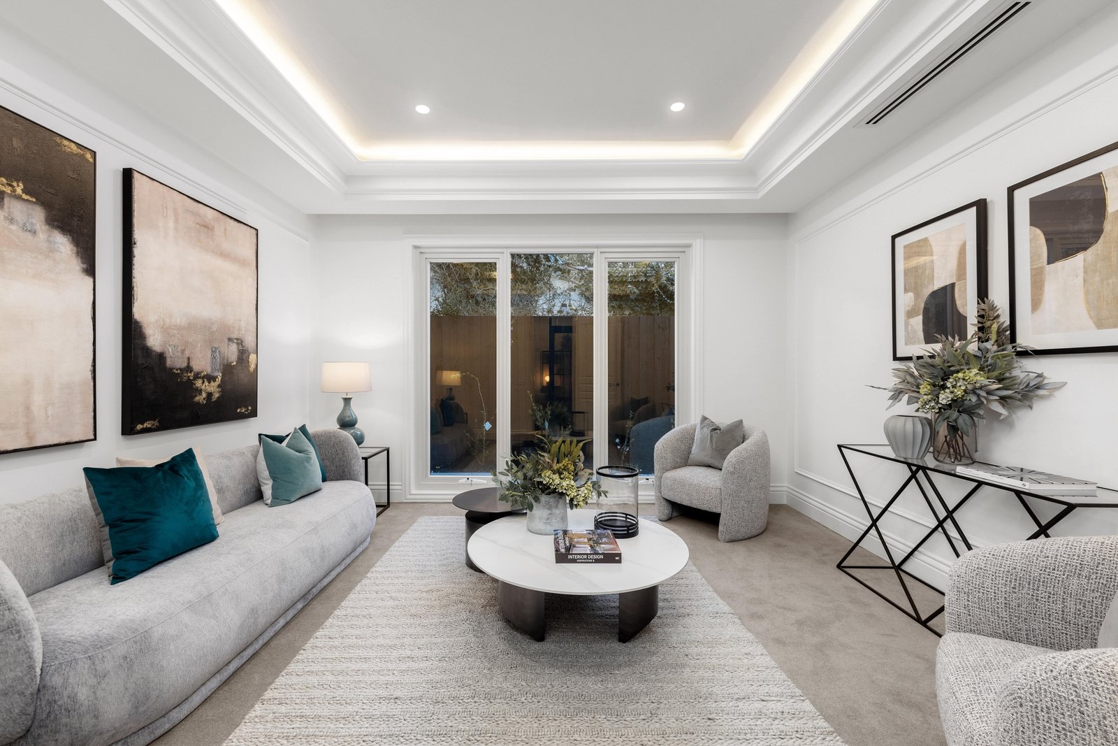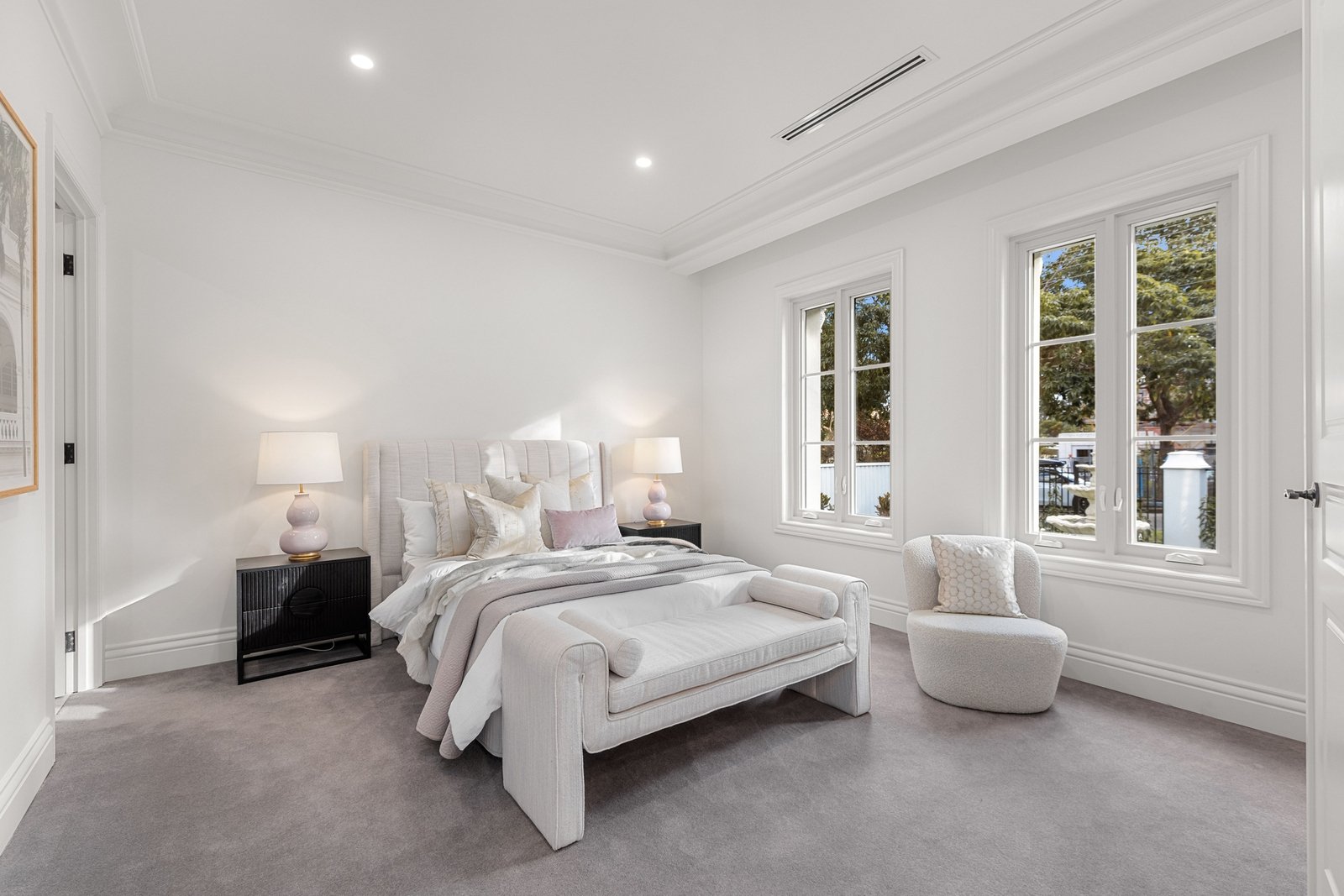 The ideal setting for relaxing and entertaining, the private backyard enjoys a semi-covered alfresco zone and a lush lawn area for the kids or family pets. Finishing touches include video intercom, alarm system, CCTV, zoned ducted heating and refrigerated cooling, wool carpet, a music room, double-glazed windows/doors, a guest powder room, water tank, automated gates, and a double auto garage.