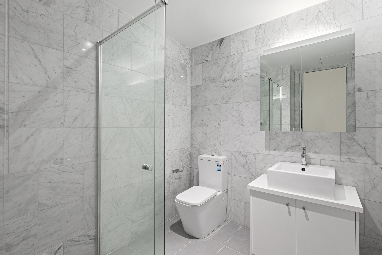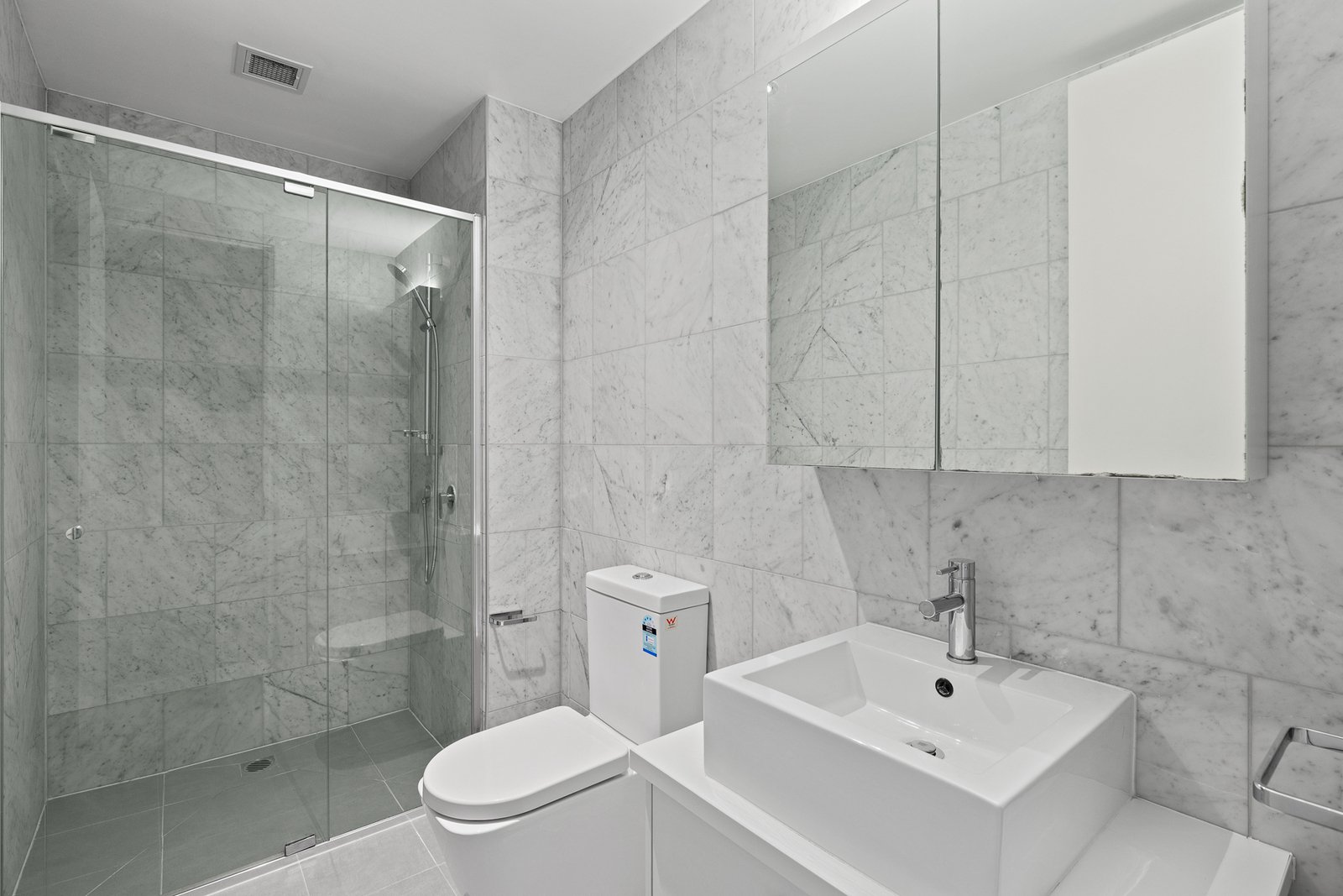 The apartment comprises generously sized bedrooms, each adorned with mirrored built-in wardrobes. The master suite is distinguished by a study alcove and an ensuite, featuring opulent marble tiling, a shower, a basin, and a toilet. Additionally, a tastefully designed family bathroom enhances the residence’s practicality. The apartment is equipped with a split-system heating and cooling unit, video intercom security, and high-speed fiber broadband internet.