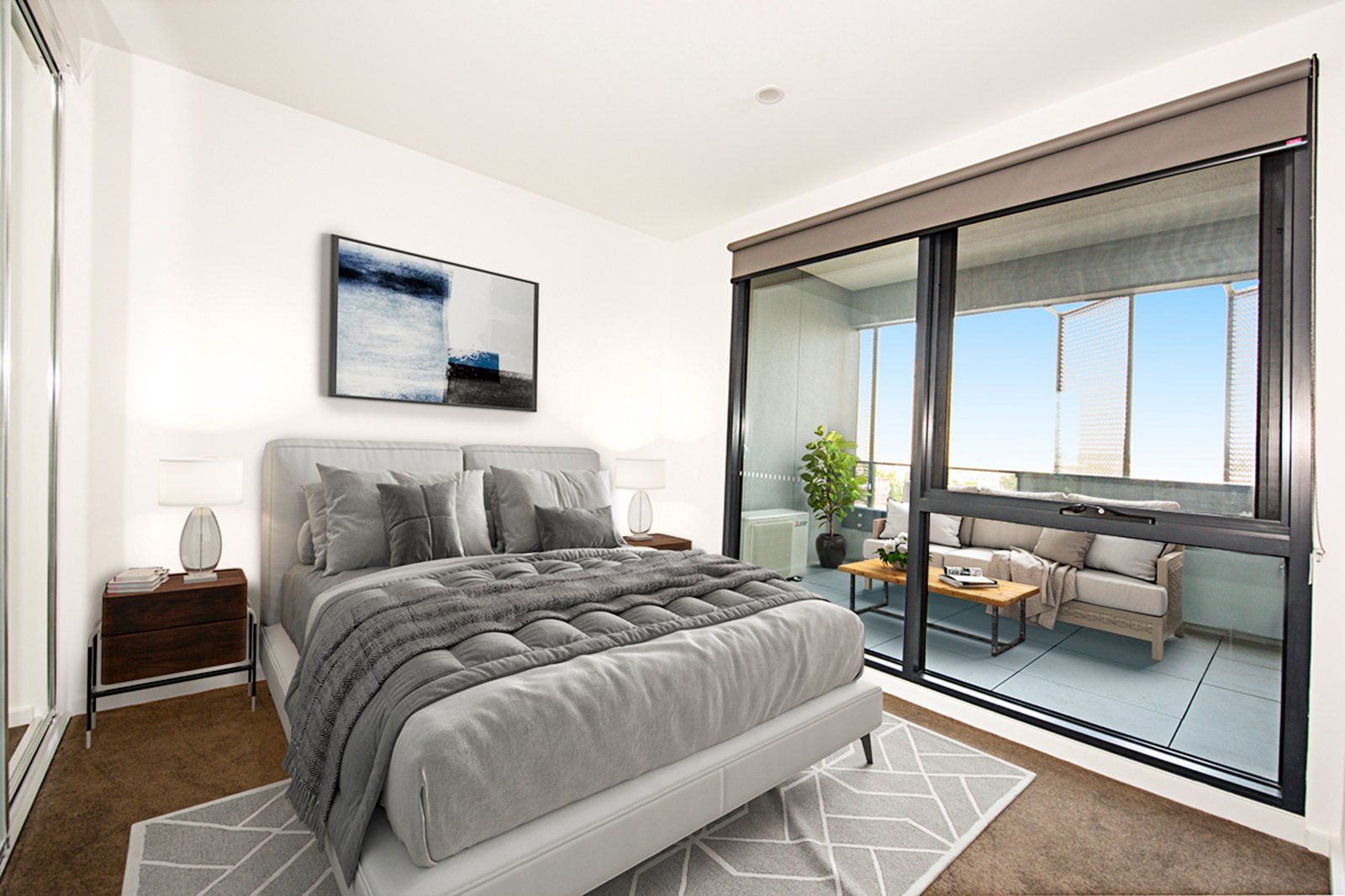 • Contemporary one-bedroom, one-bathroom apartment