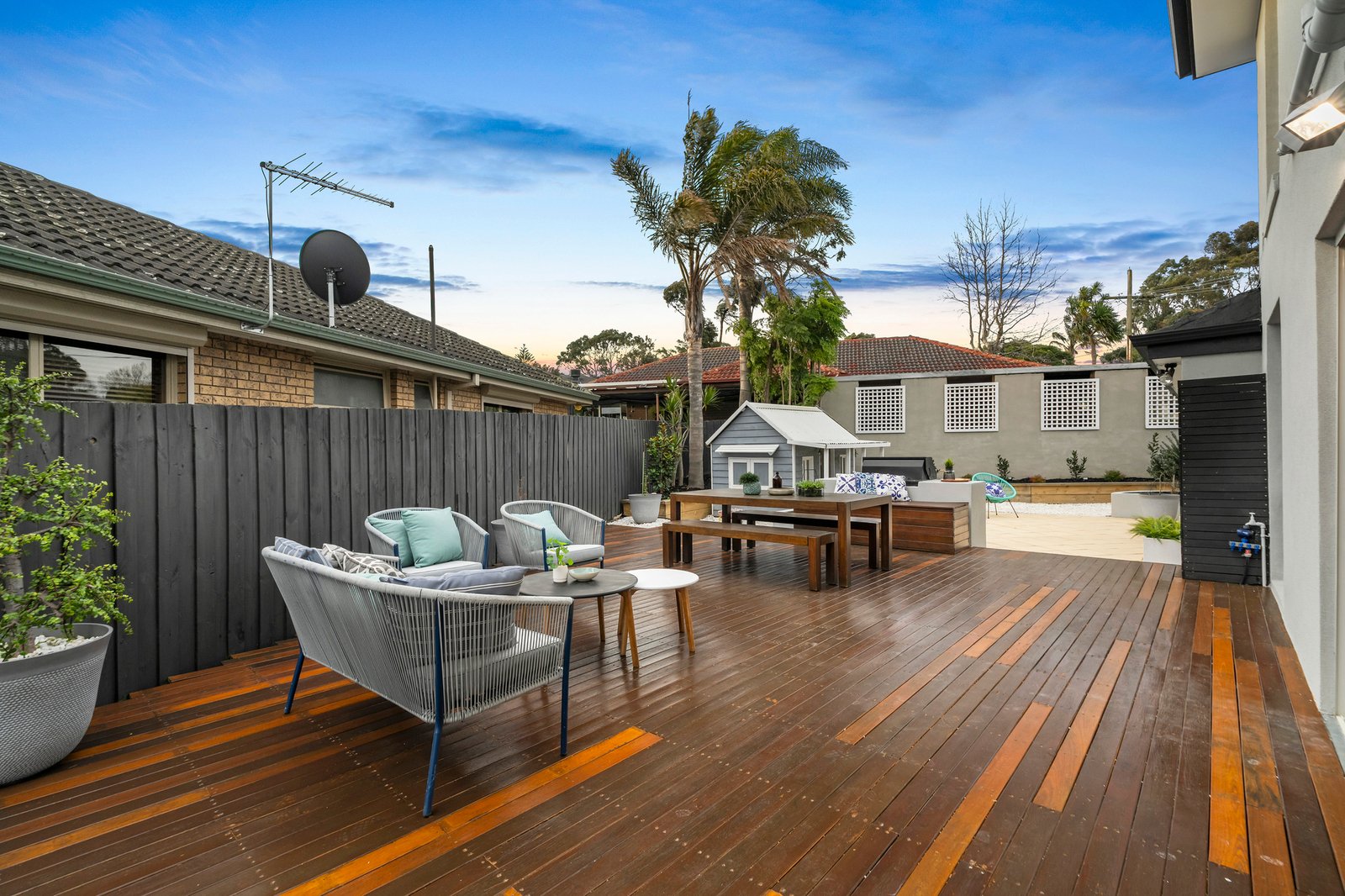 A contemporary grey render and romantic front verandah make a fine first impression across the sweeping corner of Entally Drive and Rosella Court.