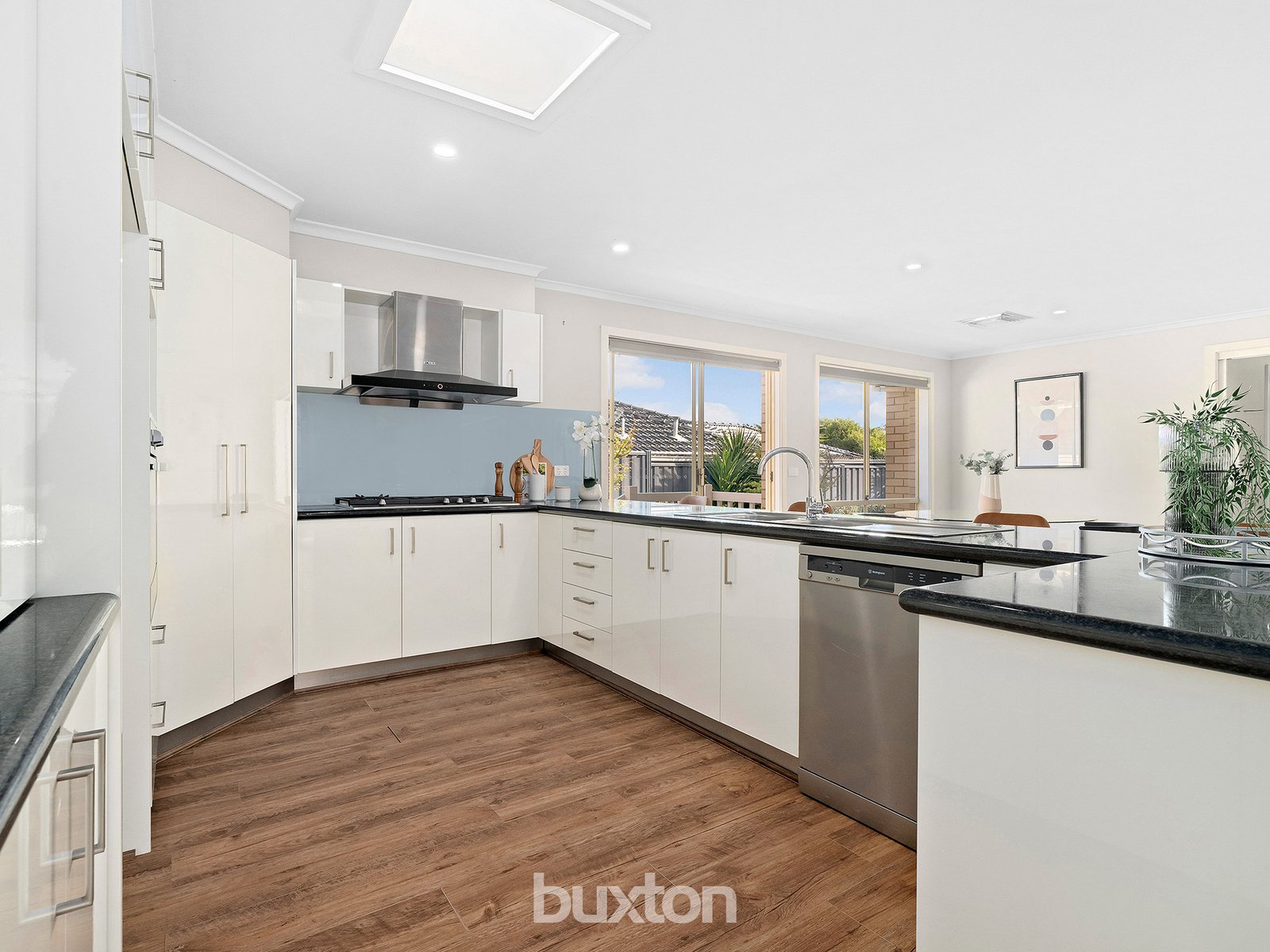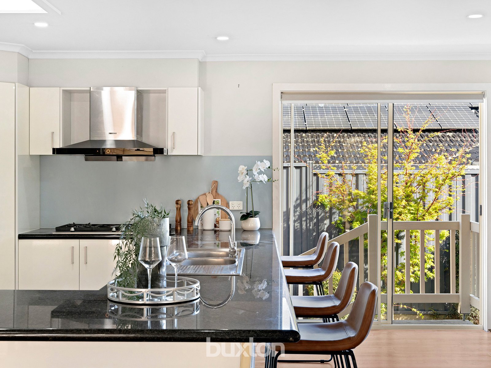 The lounge room overlooks the street for gorgeous green views of this leafy pocket. A north facing aspect in the main living room lets you bask in the bright warmth of a big open plan setting. A spacious modern kitchen features stylish granite benchtops, s/s appliances and a handy appliance cupboard to hideaway your toast or coffee machine.