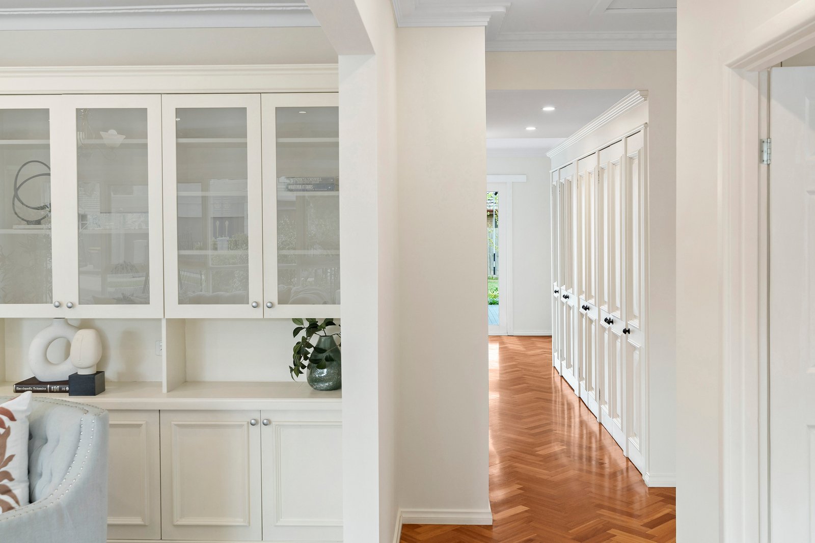 The original front section of the home includes 3 bedrooms, a light-filled front living room and a lovely galley kitchen with a 90cm upright cooker and Asko dishwasher.