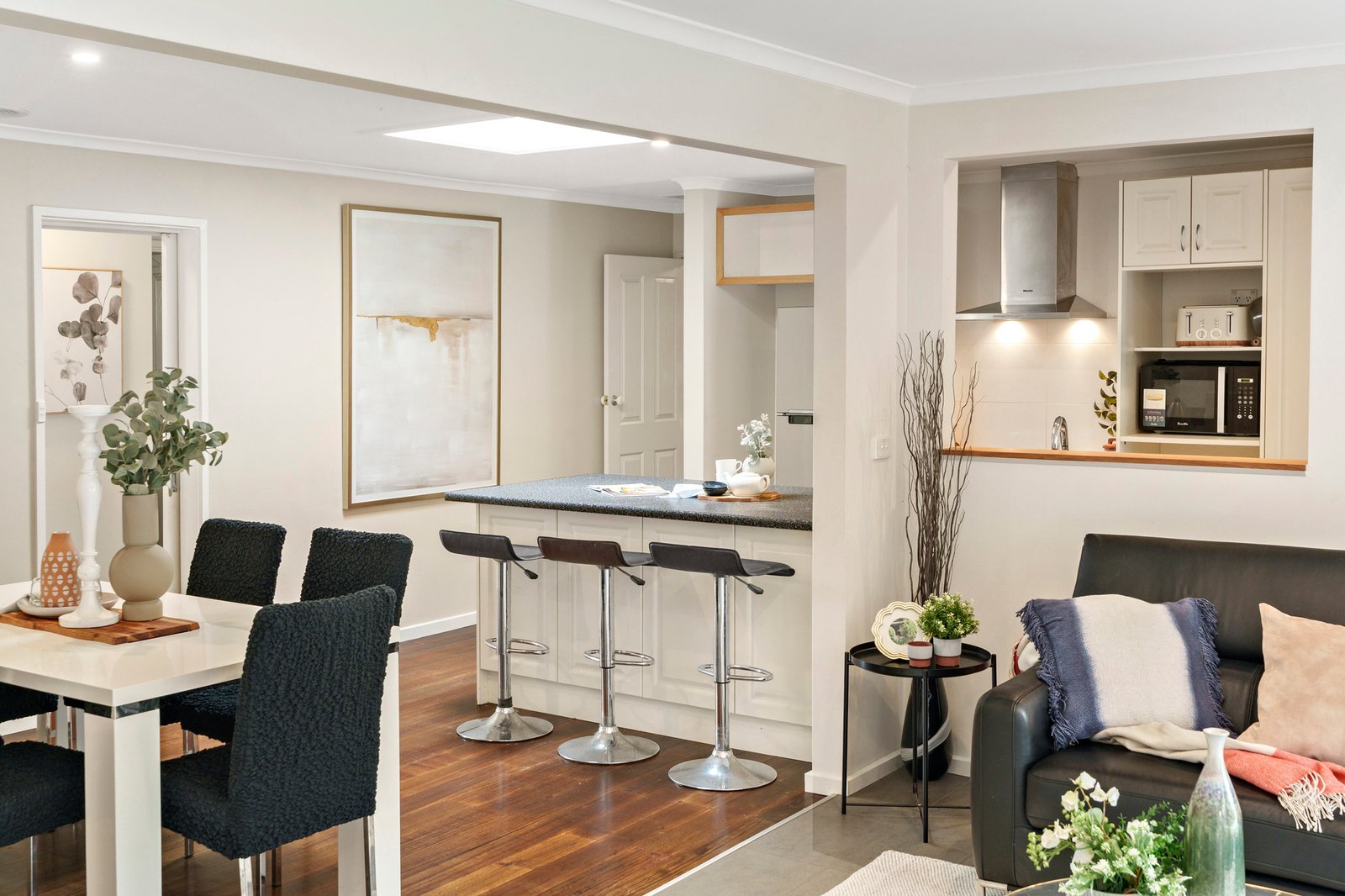 The home’s layout encourages downtime at night with clever placement of the bedrooms in the outer corners – two bedrooms in their own rear wing, and the master bedroom enjoying street frontage with its own shower ensuite and walk-in-robe.
