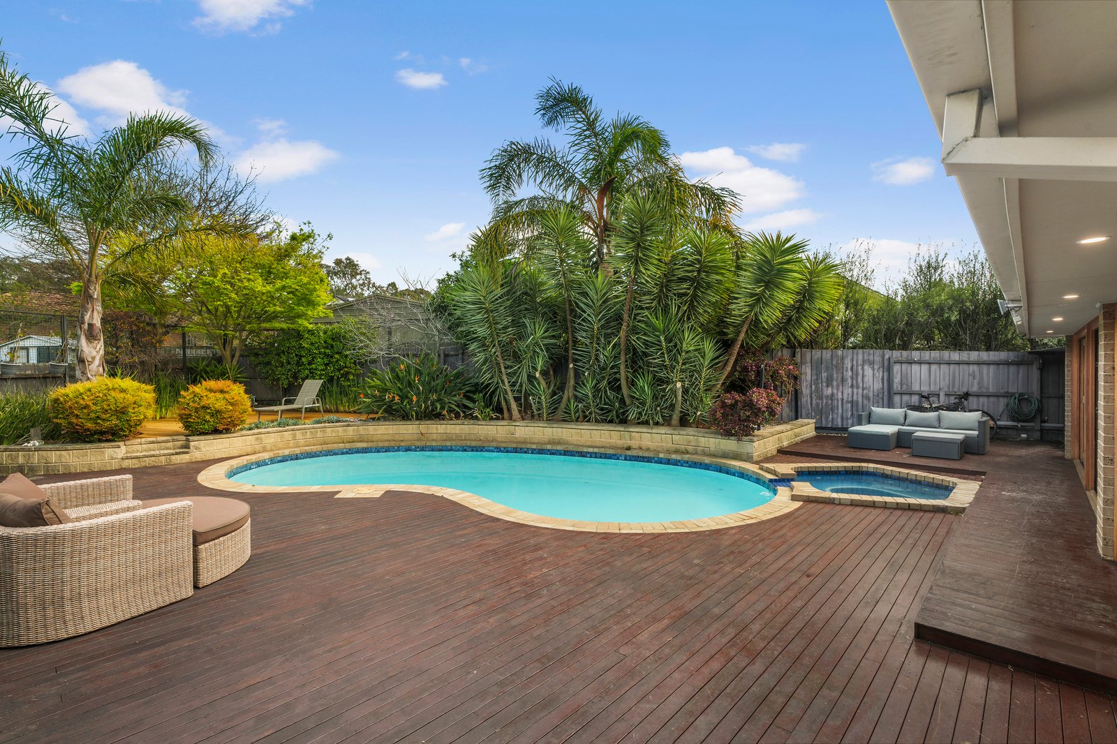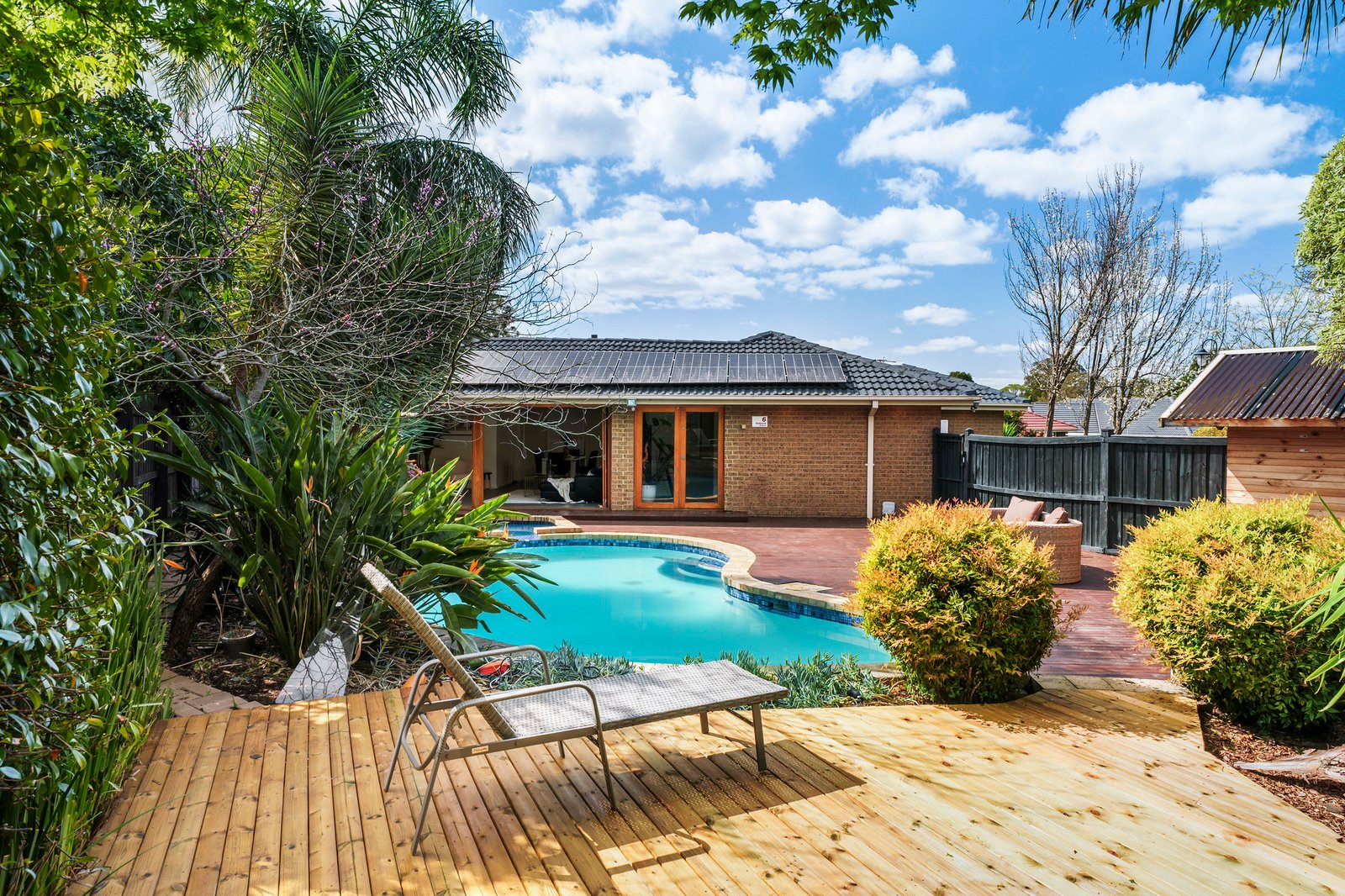Completely hidden from street view, this holiday style haven features a sparkling resort pool – salt-chlorinated and optionally heated with its own spa, sun deck and beautiful tropical landscaping.