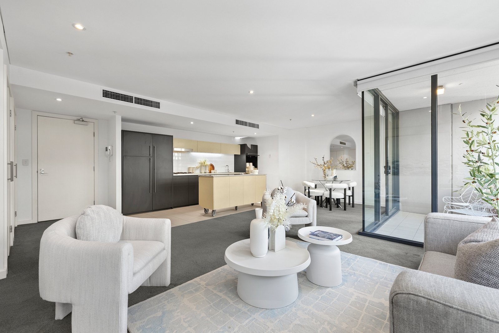 Impressive from every angle, this sparkling retreat includes premium stone surfaces, quality appliances and a movable island bench within the sleek, modern kitchen. Entertain in style and comfort as you enjoy the urban views through floor to ceiling windows in the comfort of the living zone, or step through glass sliding doors to your own private balcony. Further enhancing the appeal, convenient Euro laundry, ducted heating and cooling, single secure car space, lift access, intercom and access to the luxury SY21 community gardens, fully equipped gym and resort-style pool.