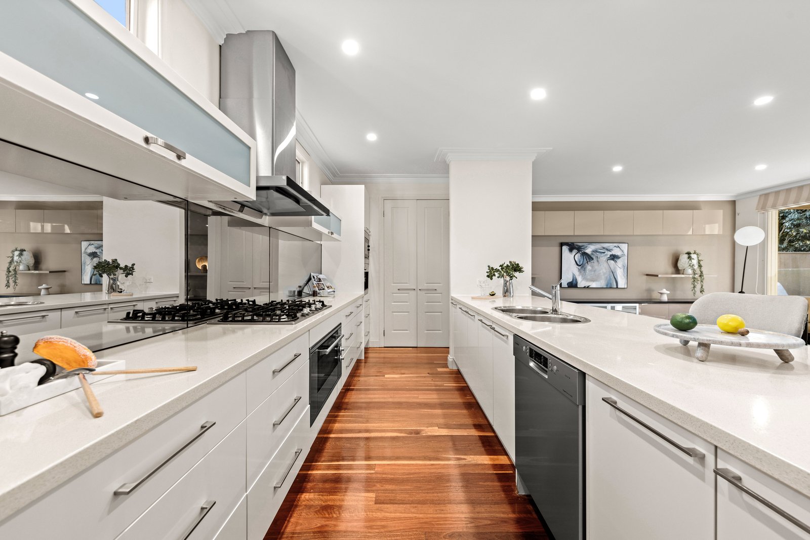 Dressed in a stylish combination of plantation shutters, Spotted Gum floors and plush carpet, invite your friends to relax by the fireplace in the peaceful lounge room with French doors out to a decked central courtyard. Entertain effortlessly in the dining/family room while cooking in the deluxe stone kitchen, fitted with premium appliances and a walk-in pantry. The ultimate in low-maintenance luxury, French doors reveal a vast under-cover alfresco and open decking, embracing the pools enticing sparkle. Featuring an upstairs retreat that the children will love, theres also an adjoining study and a desirable ground-floor office to support working from home. Rounding off an exceptional design, there is a ground-floor master bedroom with a walk-in robe and a dual-vanity ensuite with free-standing bath, a powder room, ducted heating, evaporative cooling, ducted vacuum, excellent storage, and a double auto garage.