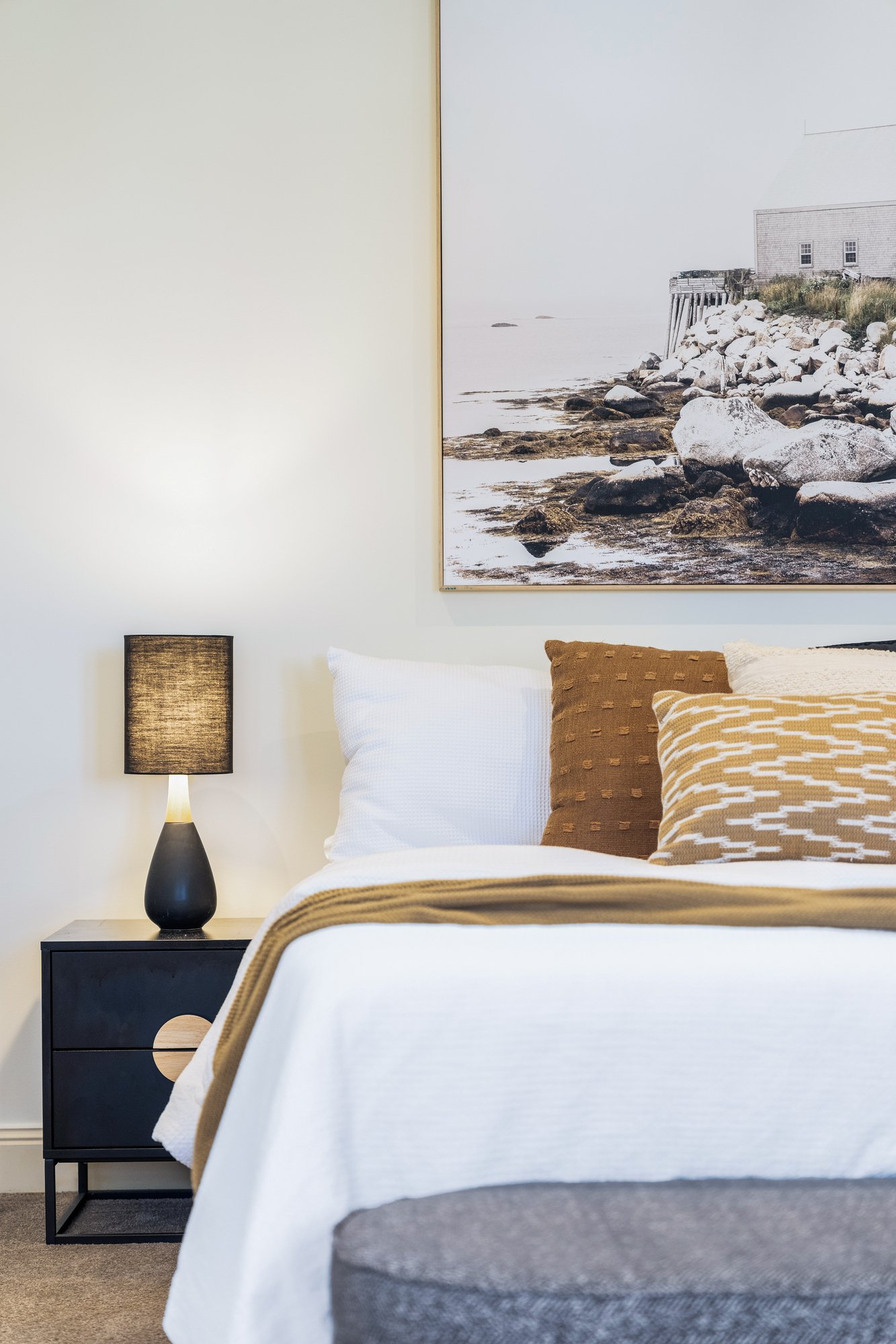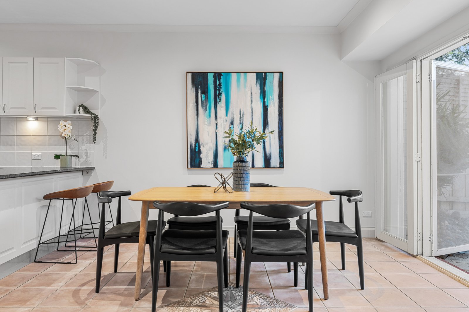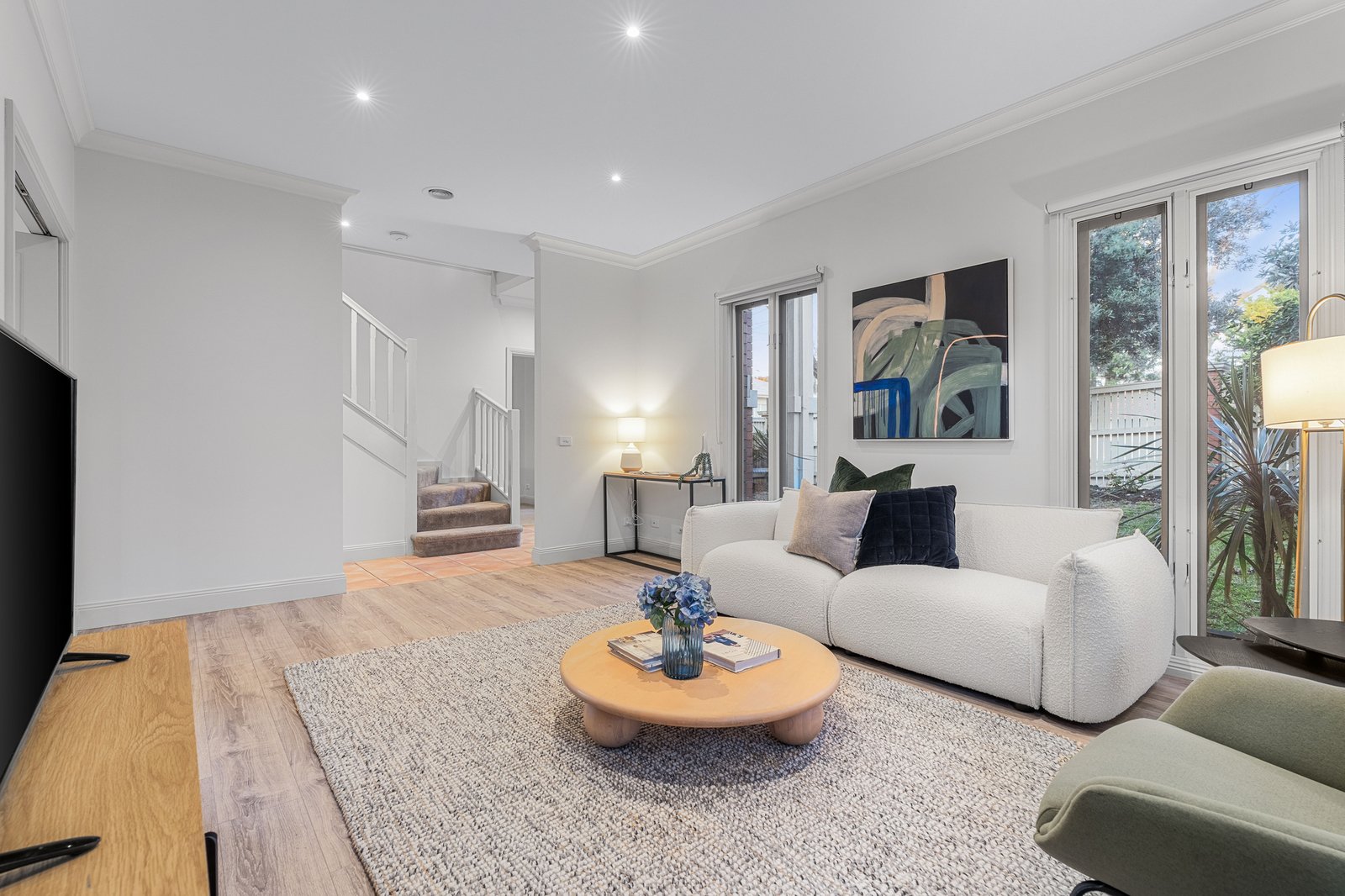 The invitingly warm floor plan reveals an expansive living area and casual dining space, seamlessly integrating with a premium kitchen that features exquisite tile flooring, an elegant splashback, refined cabinetry, ample storage solutions, and top-of-the-line stainless steel appliances. The kitchen gracefully opens to an awning-protected courtyard, bathed in northern and western sunlight, perfect for alfresco entertaining. Additionally, the ground floor encompasses a substantial home office or guest bedroom, a functional laundry, and a stylish powder room, enhancing everyday convenience.