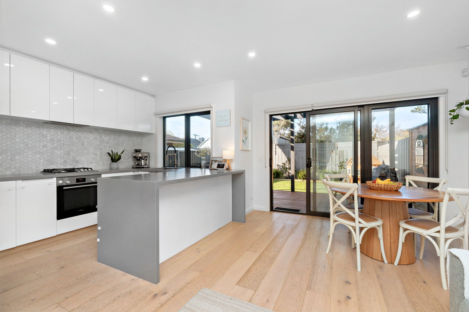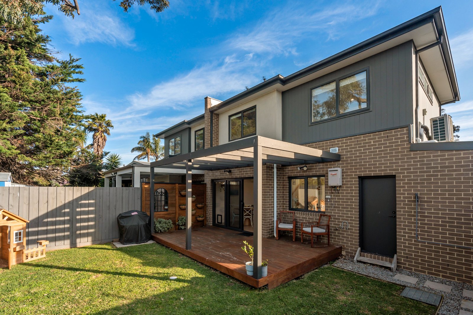 Exhibiting the perfect blend of comfort & style, this is the ultimate in town-housing living. Beautifully crafted throughout with premium finishes, clever design & secure gate access, your new home is calling! Step inside and discover the light & airy tones complimented with the warmth of timber flooring, providing a flawless look that will instantly impress. Be welcomed into the open plan sun soaked living space which extends out onto a generous decking perfect for enjoying that morning cuppa or a summer BBQ. The kitchen boasts an ultra-contemporary feel offering a stylish splashback, grey stone benches, gas cooking and plenty of cupboard/bench space as well as a breakfast bar. Retreat up the stairs to find the thoughtfully designed study space with in-build desk & cabinetry, well sized master bedroom & 2nd bedroom both with BIR’s and luxury 2 way bathroom offering a deep soaking bath, oversized shower & timber vanity. Additional features throughout include a downstairs powder room, generous laundry, automatic garage, split system heating & cooling, ceiling fans, gate with intercom access, private balcony as well as the gorgeous backyard offering the perfect low maintenance green space. This contemporary home enjoys a brilliant Bayside address - within a stroll of Carrum Village, station, schools, river trail and of course the stunning sand & shore