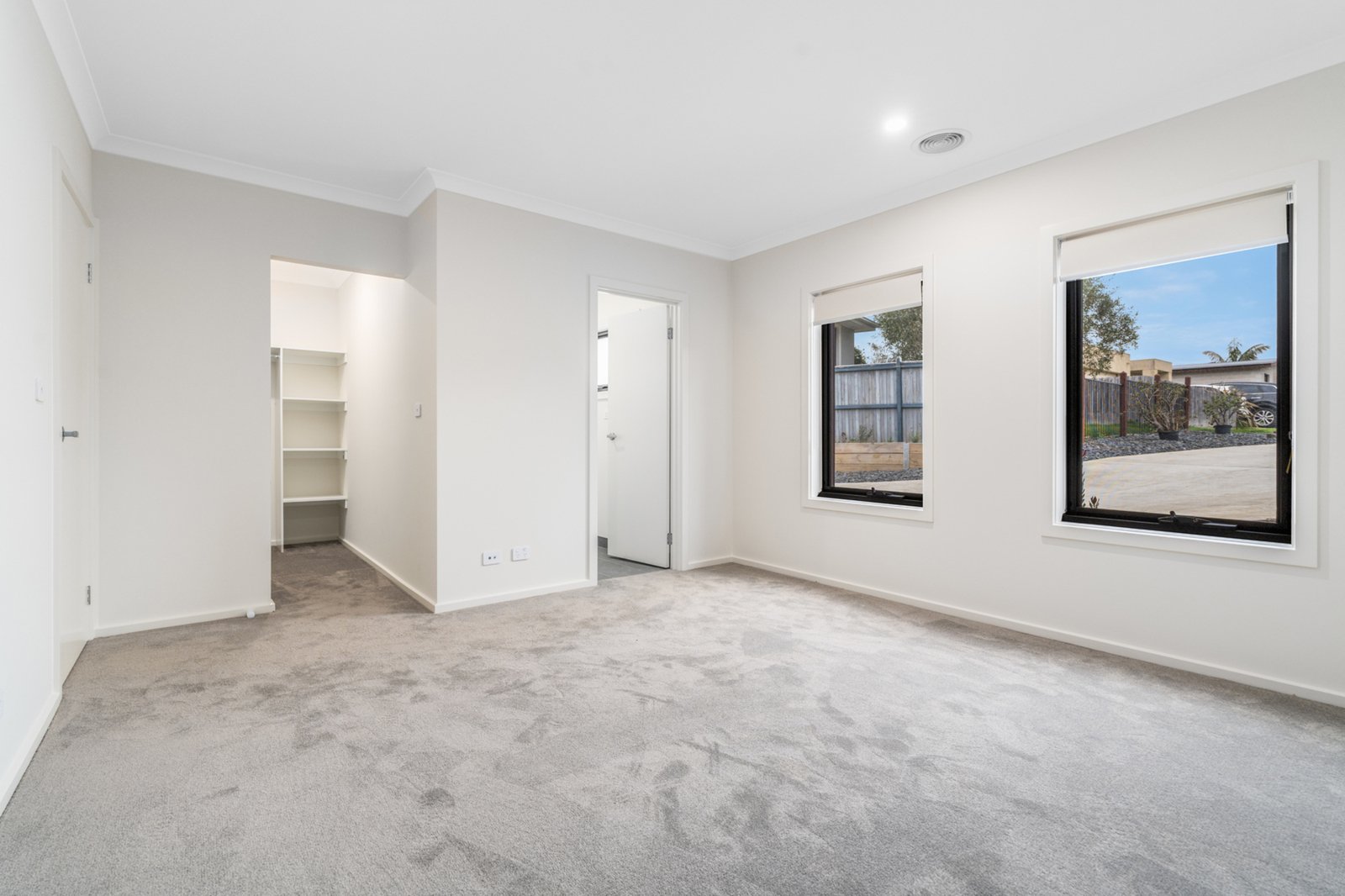 The master suite serves as a private retreat, complete with a generous walk-in robe and a luxurious ensuite, offering a tranquil space to unwind. The remaining two bedrooms are equipped with built-in robes and share access to the sleek central bathroom, providing convenience and comfort for family or guests.