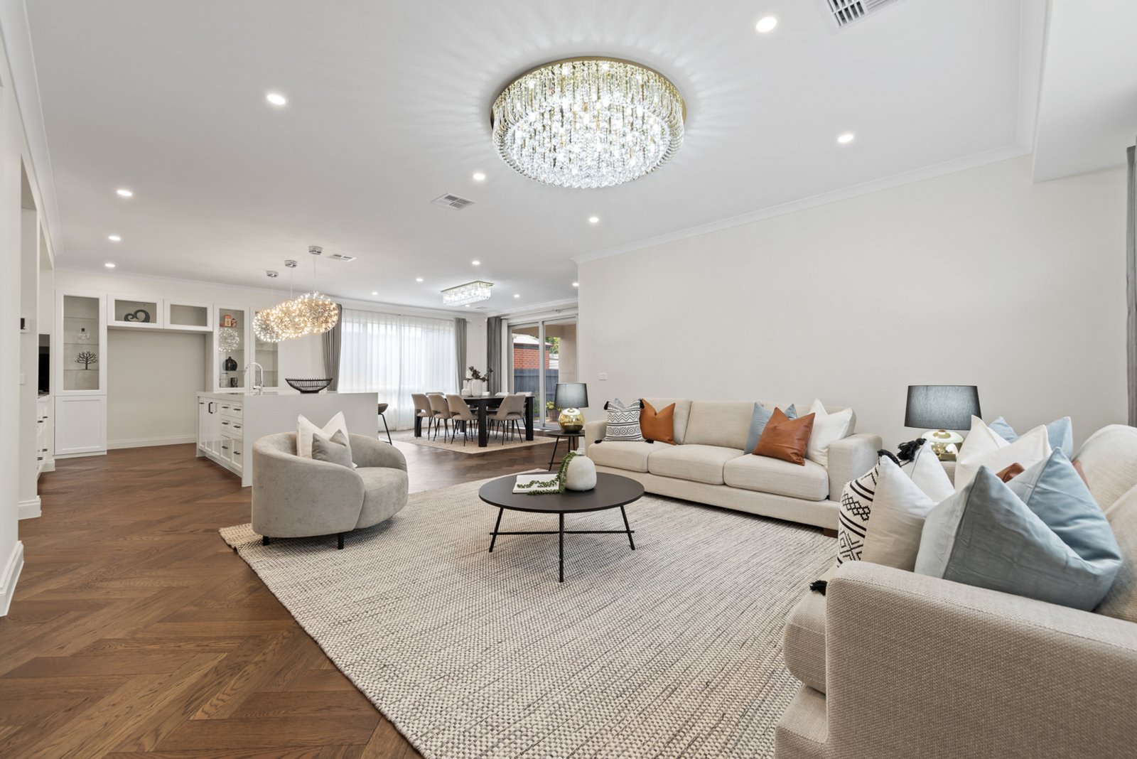 Intelligently crafted with an emphasis on entertaining and family luxury, the home relishes the allure of multiple living zones including a formal lounge room, generous rumpus room plus an upstairs leisure room with adjacent bar/coffee station.
