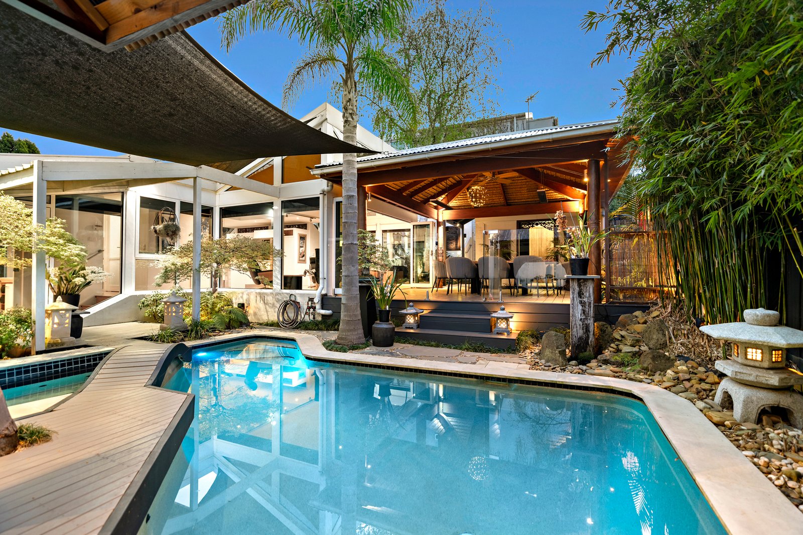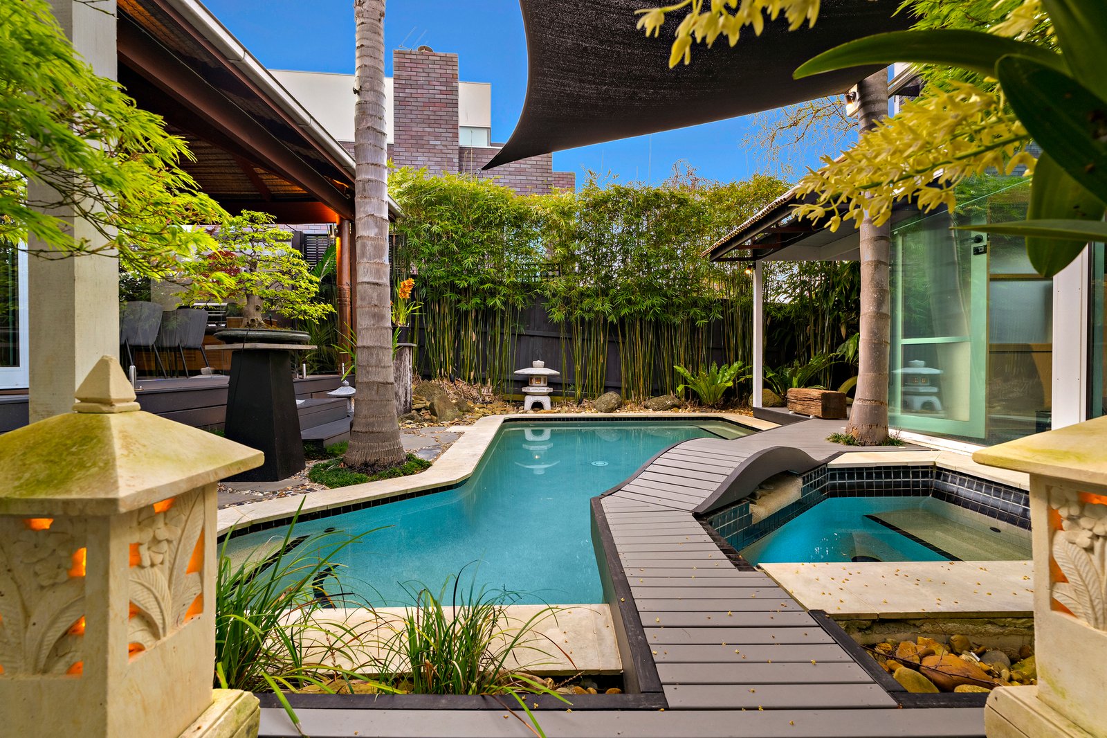 New boardwalks invite you to peruse the gardens at your leisure with a grand Moon Gate framing the bonsai alcove beyond the pool. Bifold doors to the deck and updated pool equipment guarantee you’re summer ready for poolside entertaining.