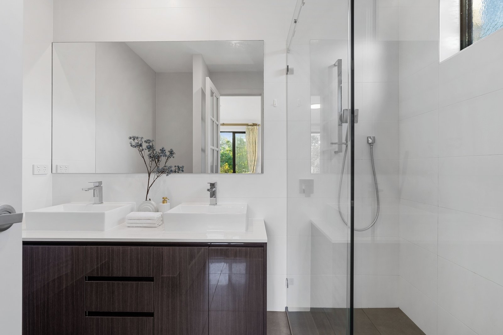 Featuring a ground floor master bedroom with dual-vanity ensuite plus a second master bedroom with ensuite upstairs, other highlights include a study alcove, richly polished floorboards, ducted heating/cooling, an alarm, an auto gate and extra security for the fence and gate.
