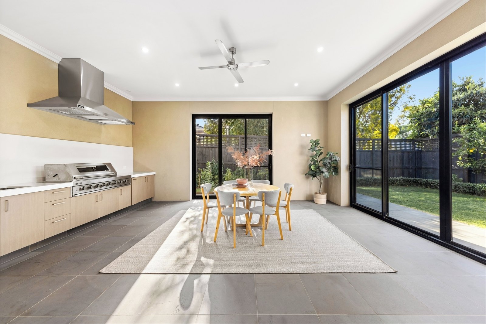 There is also a home office and a trio of inviting bedrooms, including one with a private ensuite, and a Jack and Jill bathroom that services the remaining bedrooms with ease. Take entertaining to the next level, highlighted by a covered alfresco zone with an outdoor kitchen and seamless access to an easy-to-maintain backyard. Finished with video intercom, automatic front gates, ducted heating/air conditioning/vacuuming, CCTV, double-glazed windows, high ceiling and full-height doors, and a triple auto garage.