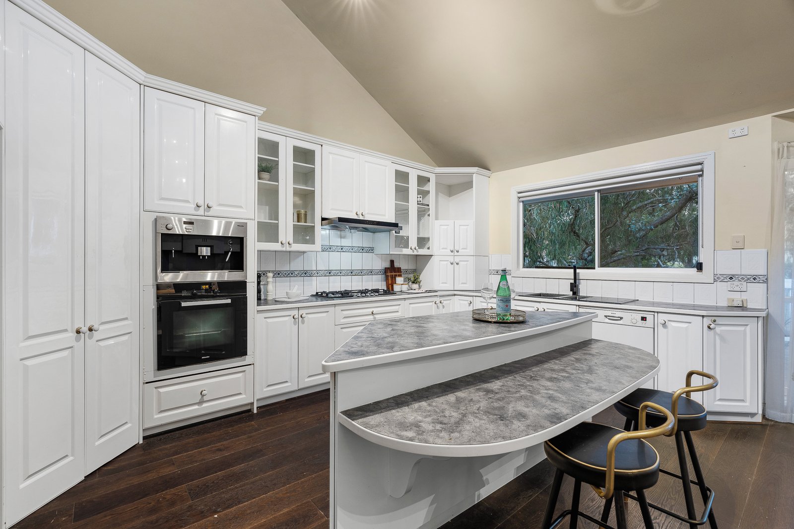 Dark timber flooring streams through the expansive lounge room and into the open dining room crowed with a vaulted ceiling. Be spoilt for choice with two kitchens, one on each floor. Cook with pleasure in the stylish main kitchen with an island, Miele oven and coffee machine while your friends relax out on the substantial alfresco deck where the views are at their finest.