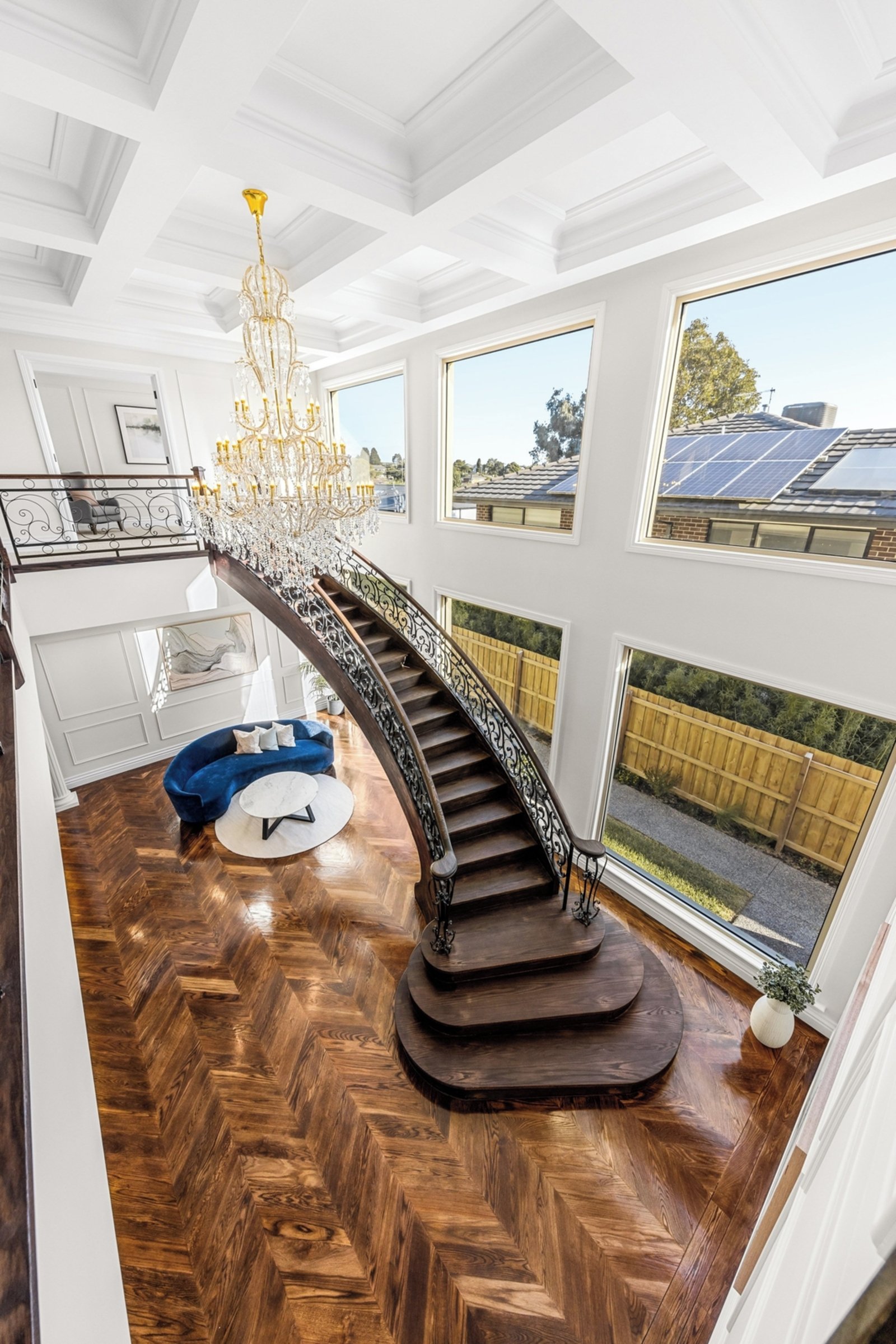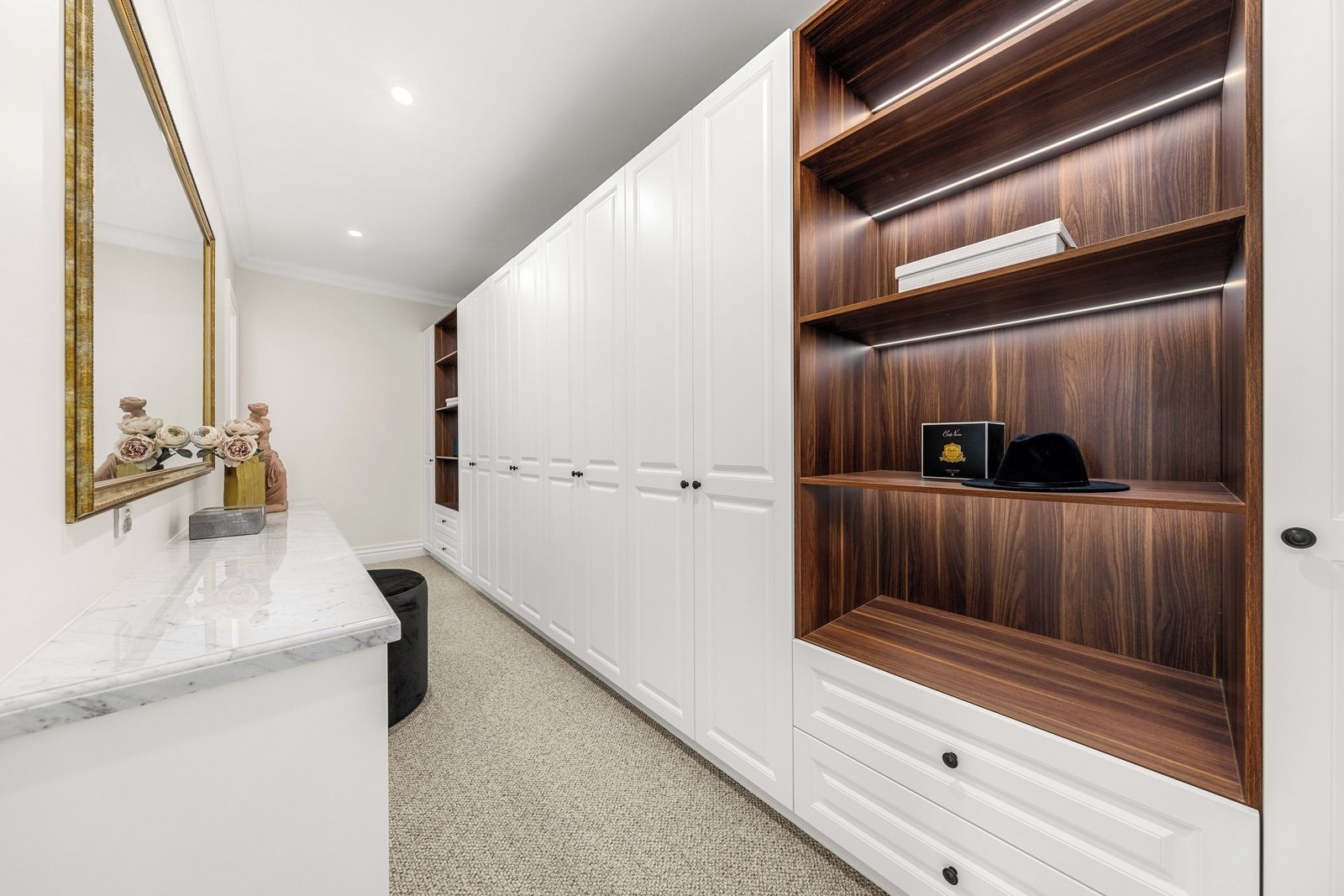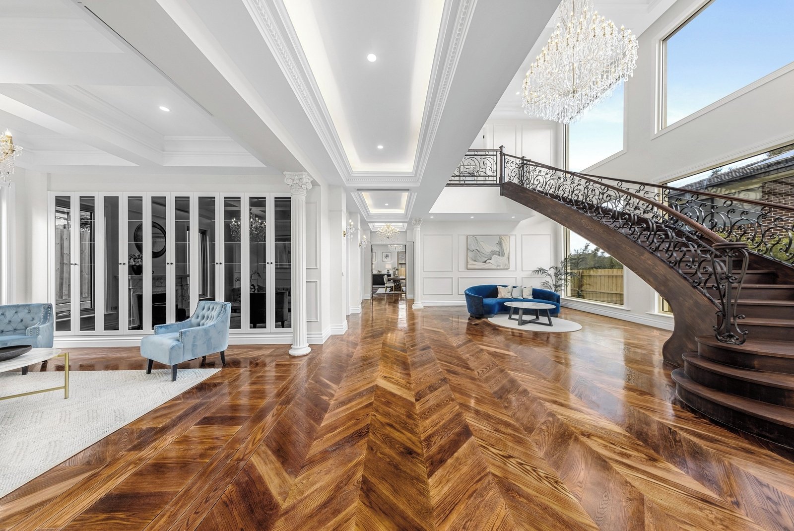 Step into a world of timeless beauty with a grand staircase that welcomes you into this exquisite abode. Every detail is crafted with precision, showcasing the finest in French Provincial design. Revel in the elegance of dedicated wine cabinets, perfect for showcasing and storing your finest vintages. Entertain guests in style or savor a quiet evening with your favourite selection.