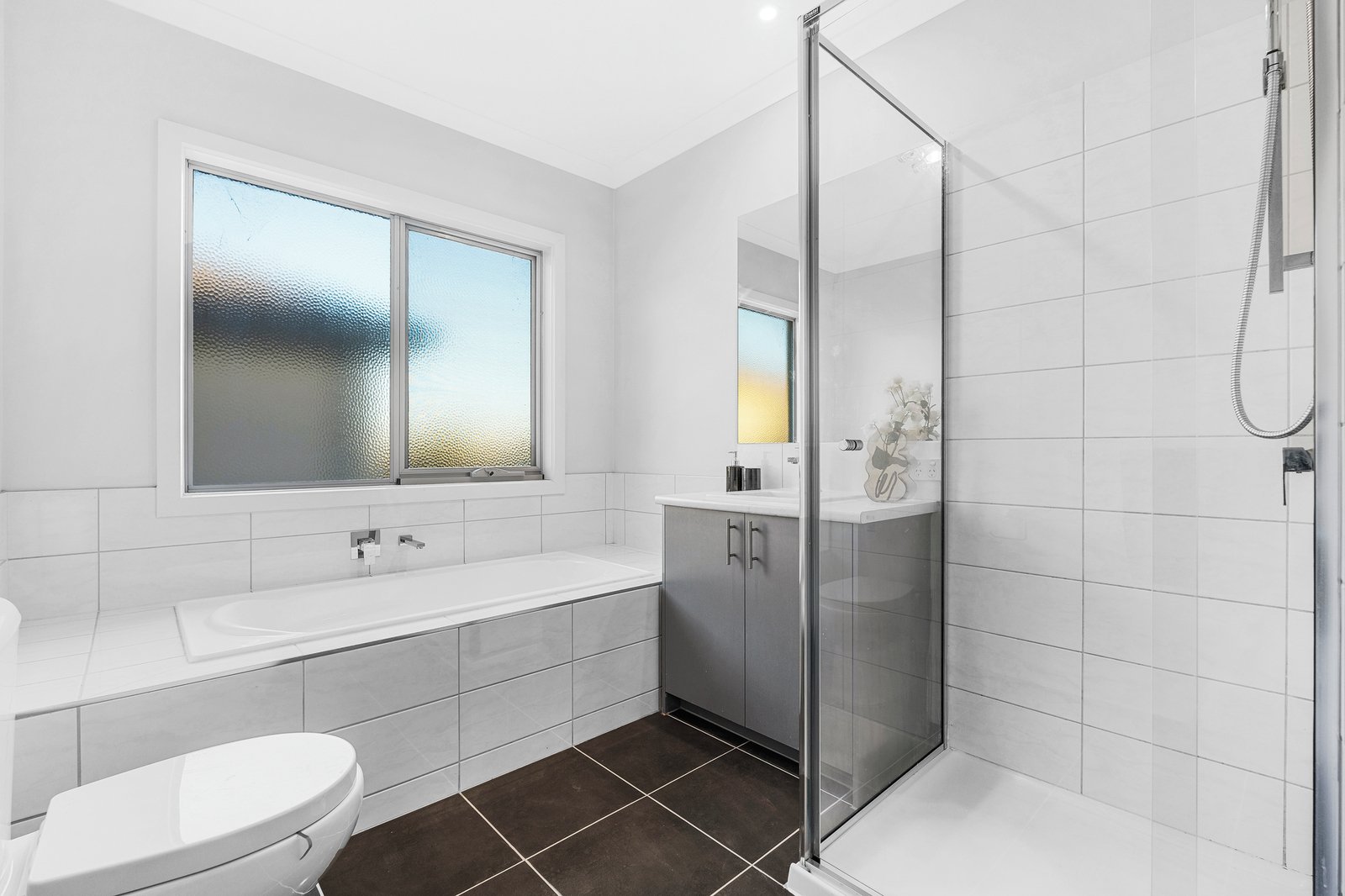 It is offering three bedrooms, including one with a built-in-robe and a master bedroom with an Ensuite and built-in-robe. It boasts a kitchen equipped with gas cooking appliances, an oven, and a dishwasher. A spacious dining and living area with an air conditioner offers ample room for relaxation and entertaining. The main bathroom includes a separate shower and bathtub. Conveniently there is a powder room near the laundry on ground level. Additional highlights include a storage room near the staircase, and a decking area with a storage shed and water tank, complemented by gas ducted heating and split system throughout the property.