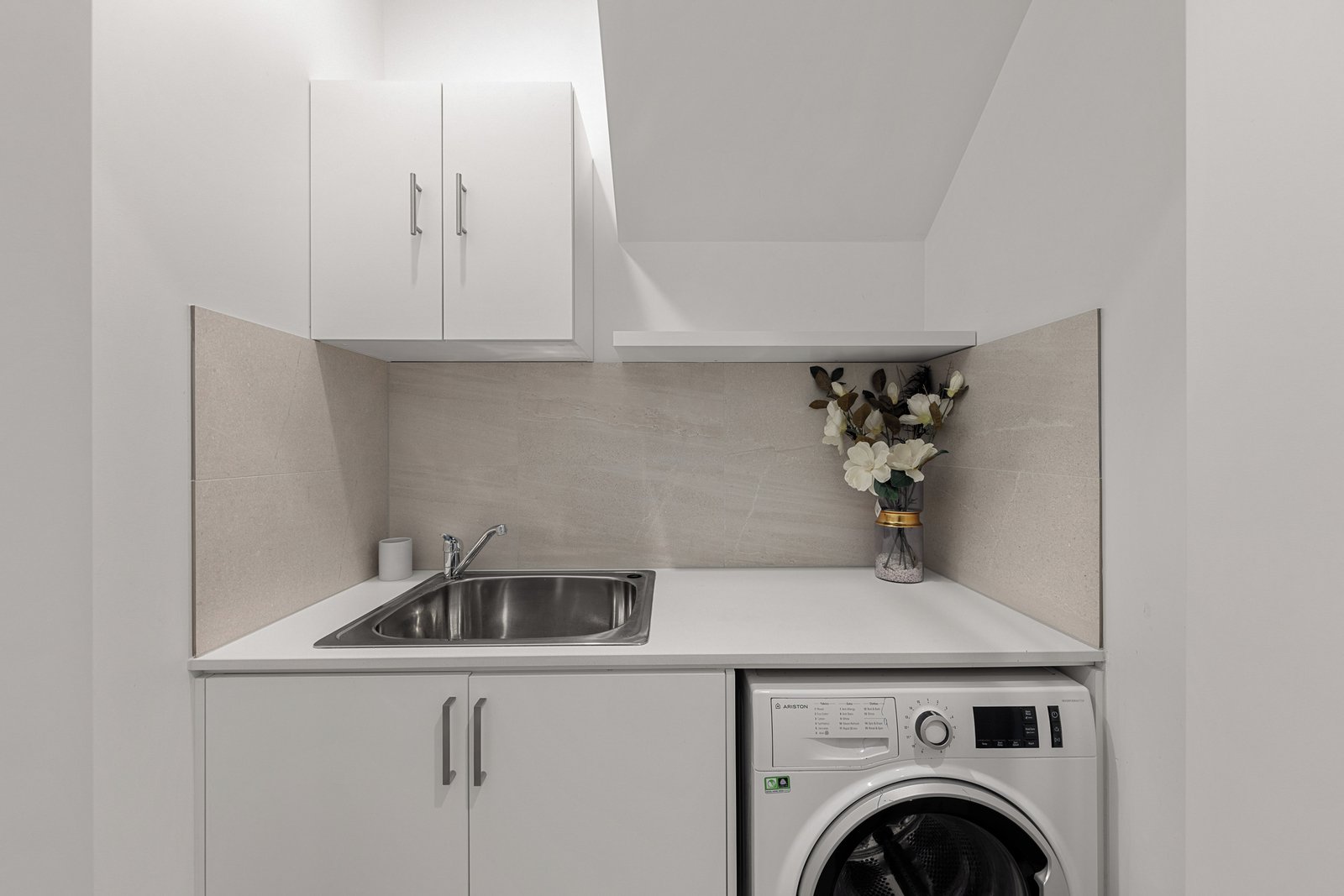 This property features sunny first-floor living and dining areas, complemented by a sleek, well-appointed kitchen with stone and steel finishes. The kitchen opens to a north-facing balcony patio, perfect for alfresco living and entertaining. Also on this level, the second bedroom includes built-in robes and sliding doors that open to the patio, as well as an adjacent full-size bathroom with a bath.