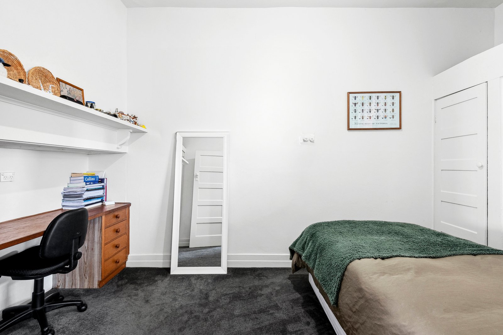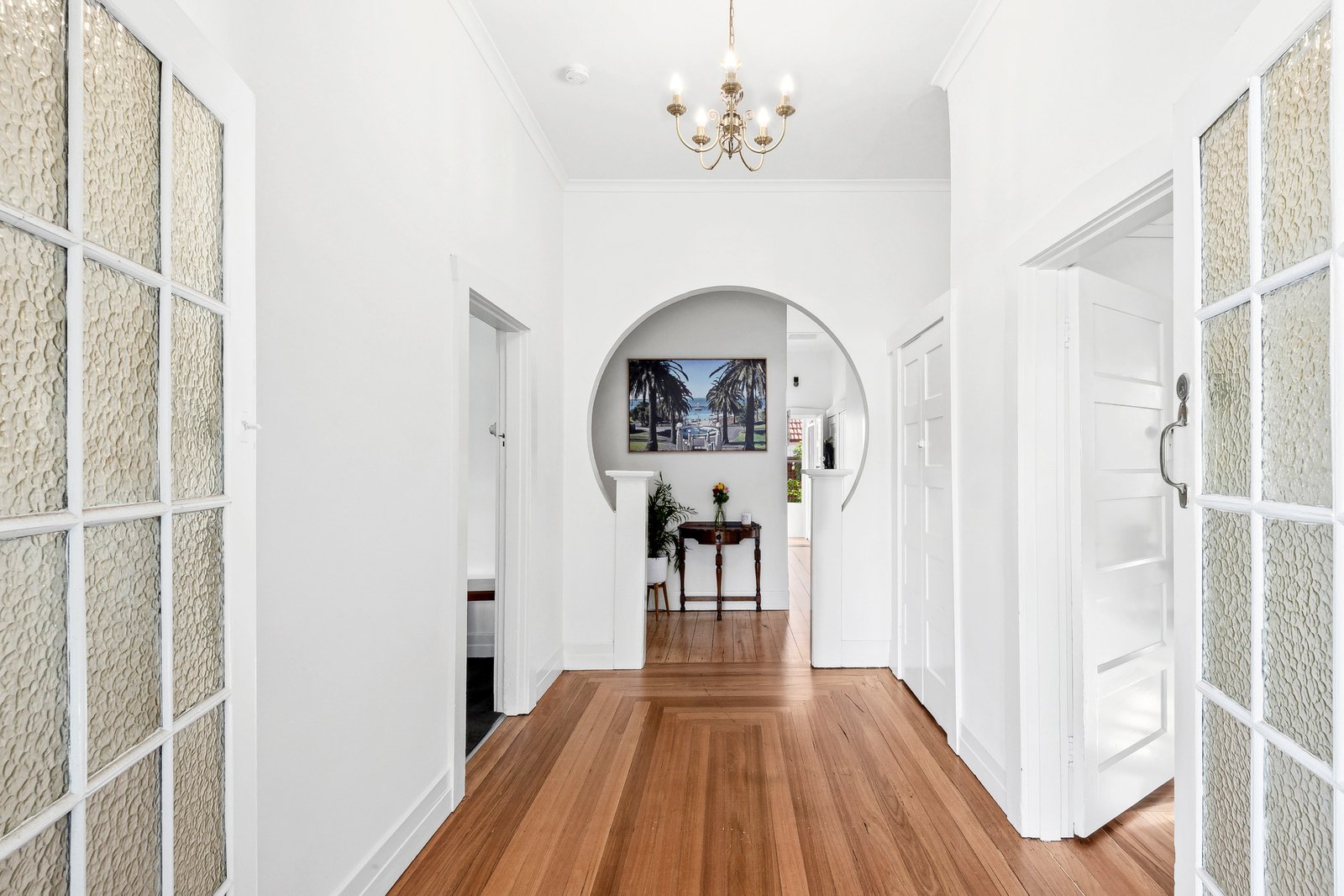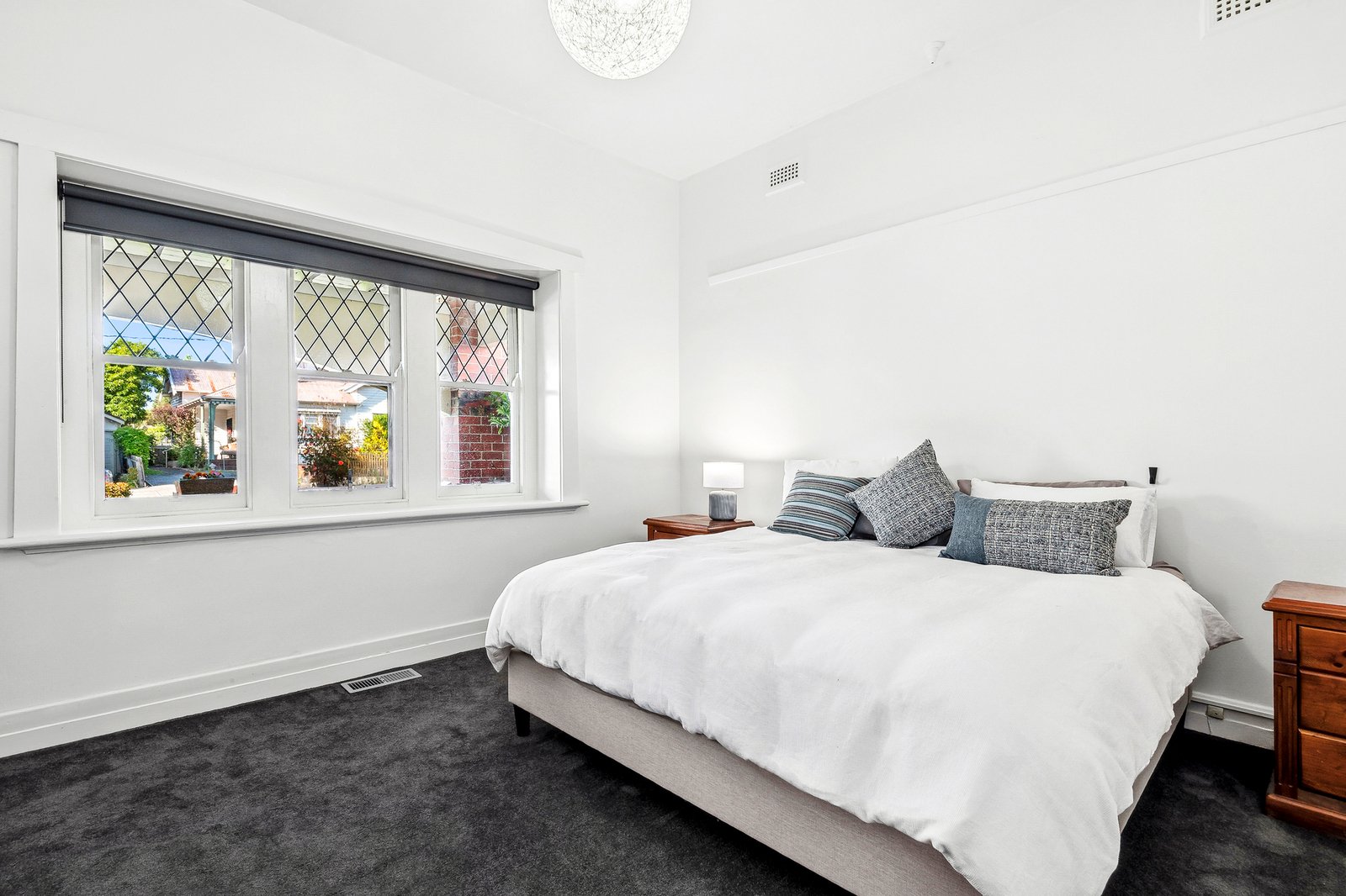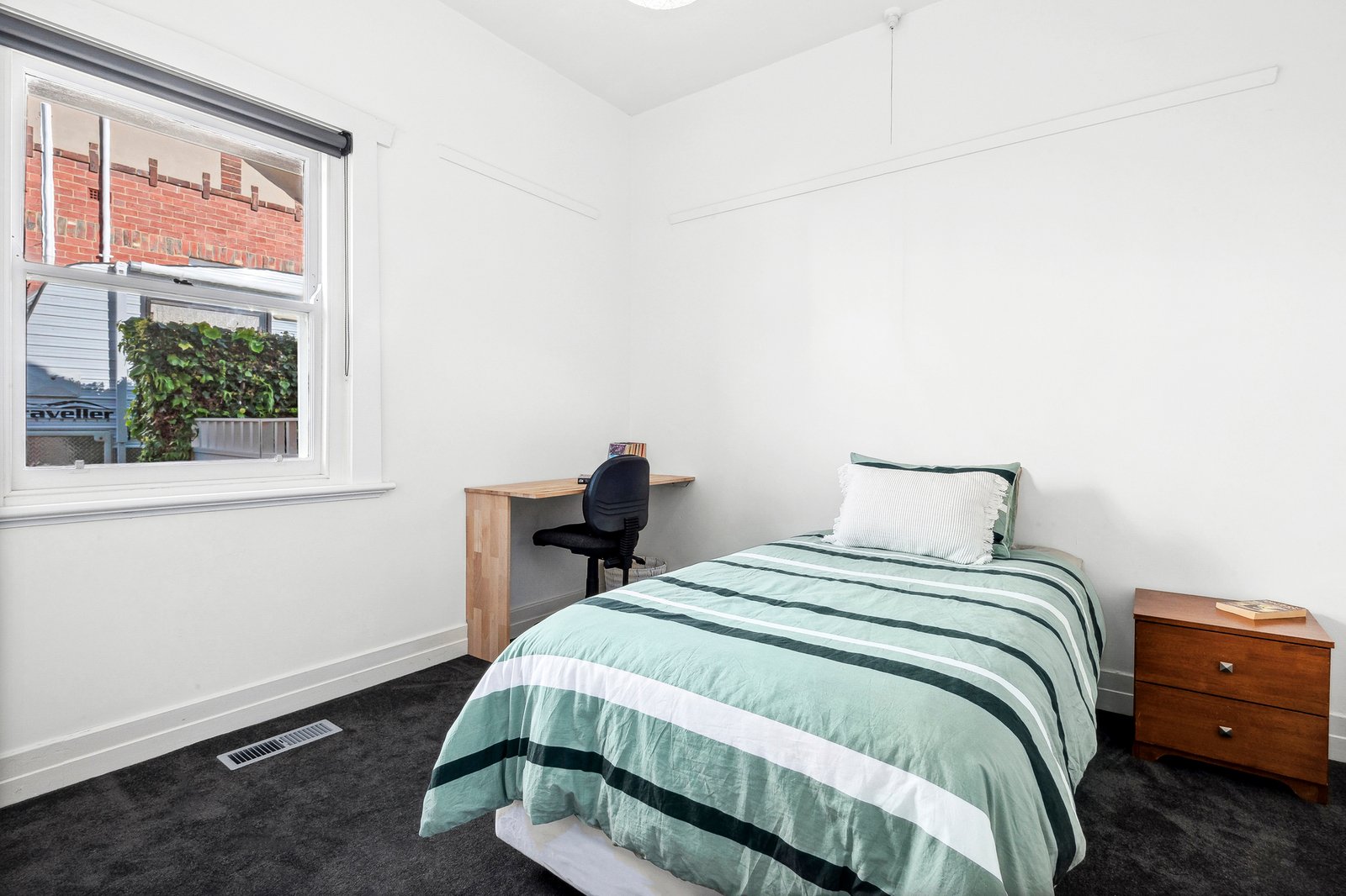 Comprising three bedrooms, the main is generous in size, with two additional rooms including built-in robes and desks. The central bathroom is presented in classic white, with pedestal basin, modern shower and quality fittings. A large laundry, sunroom and additional wc at the rear allow for excellent functionality.