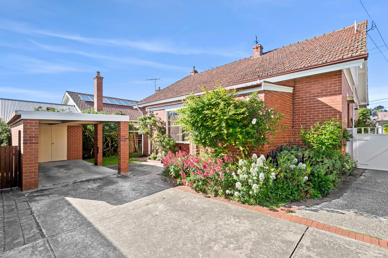 Outside, the north facing courtyard offers a secluded space to enjoy the sun, and a carport with storage facilities accommodates excellent off-street parking.