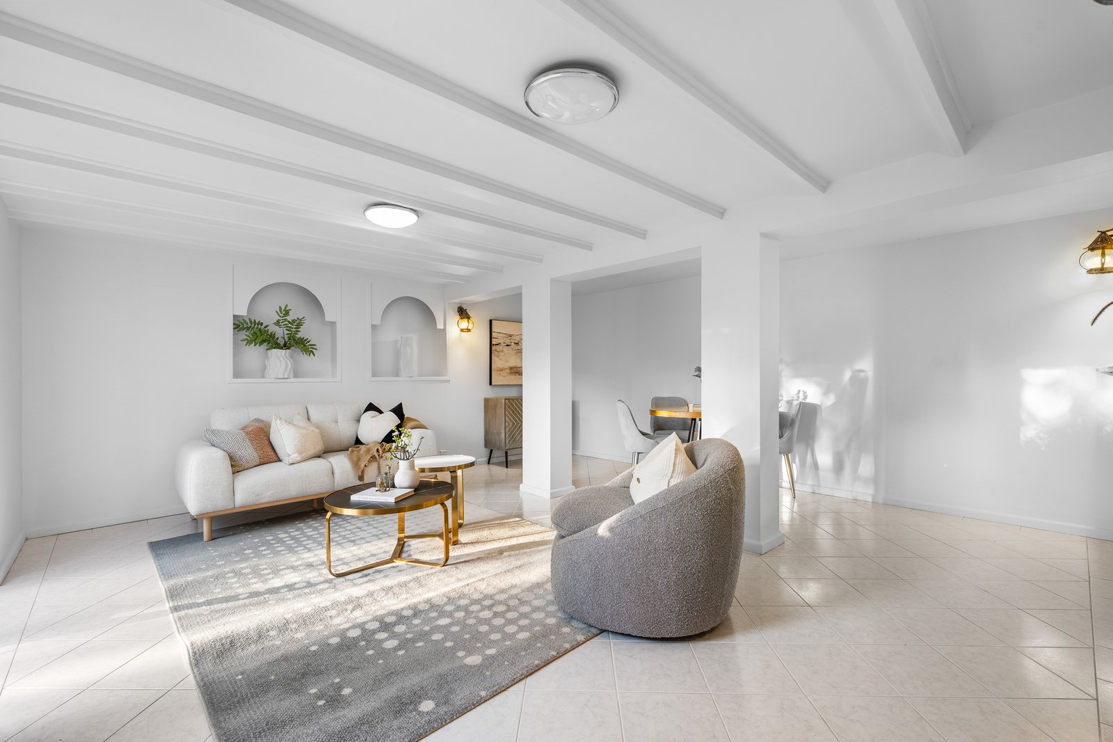 The lower level offers a sanctuary for a growing family, with formal and communal living areas that are both expansive and inviting. This area includes another well-appointed kitchen, a sizable bedroom, a fully-tiled bathroom, and abundant storage, all of which can be discreetly separated to provide extended family members with the privacy and convenience they desire.