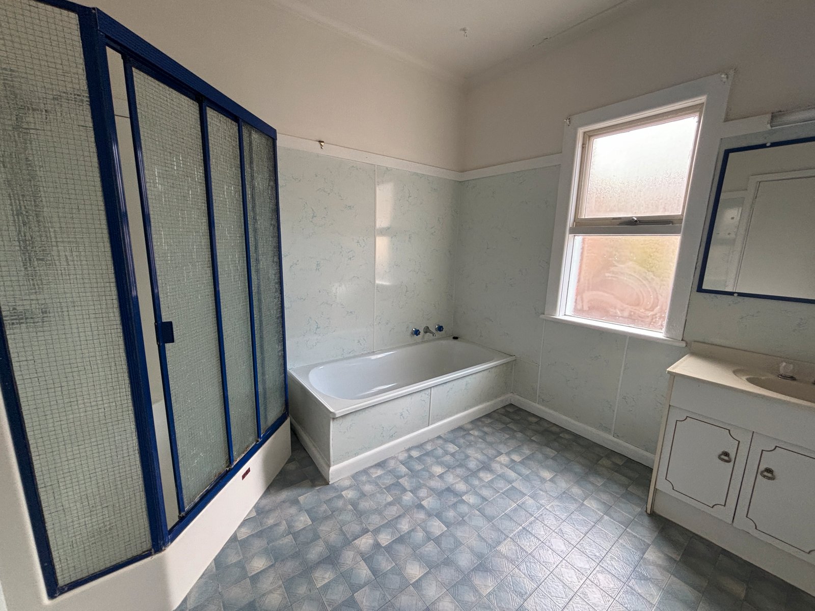 * Central bathroom with separate bath and shower