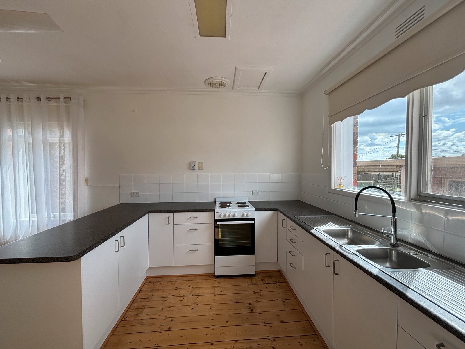 * Contemporary kitchen with electric cooking and great cupboard space